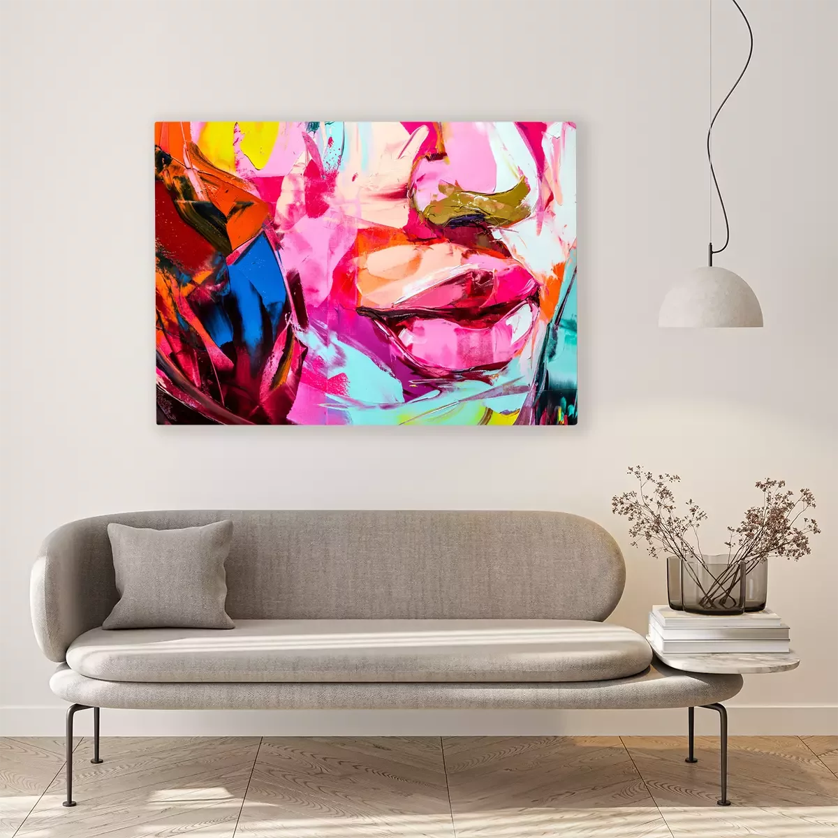 De print wordt aangebracht op hoogwaardig canvas dat op een schildersweefgetouw (spieraam) wordt gespannen. Omdat de print de zijranden bedekt, hoeft het ontwerp niet met een extra kader te worden omlijst. Wij raden ook composities aan die uit meerdere foto's bestaan en zo een coherente compositie vormen.