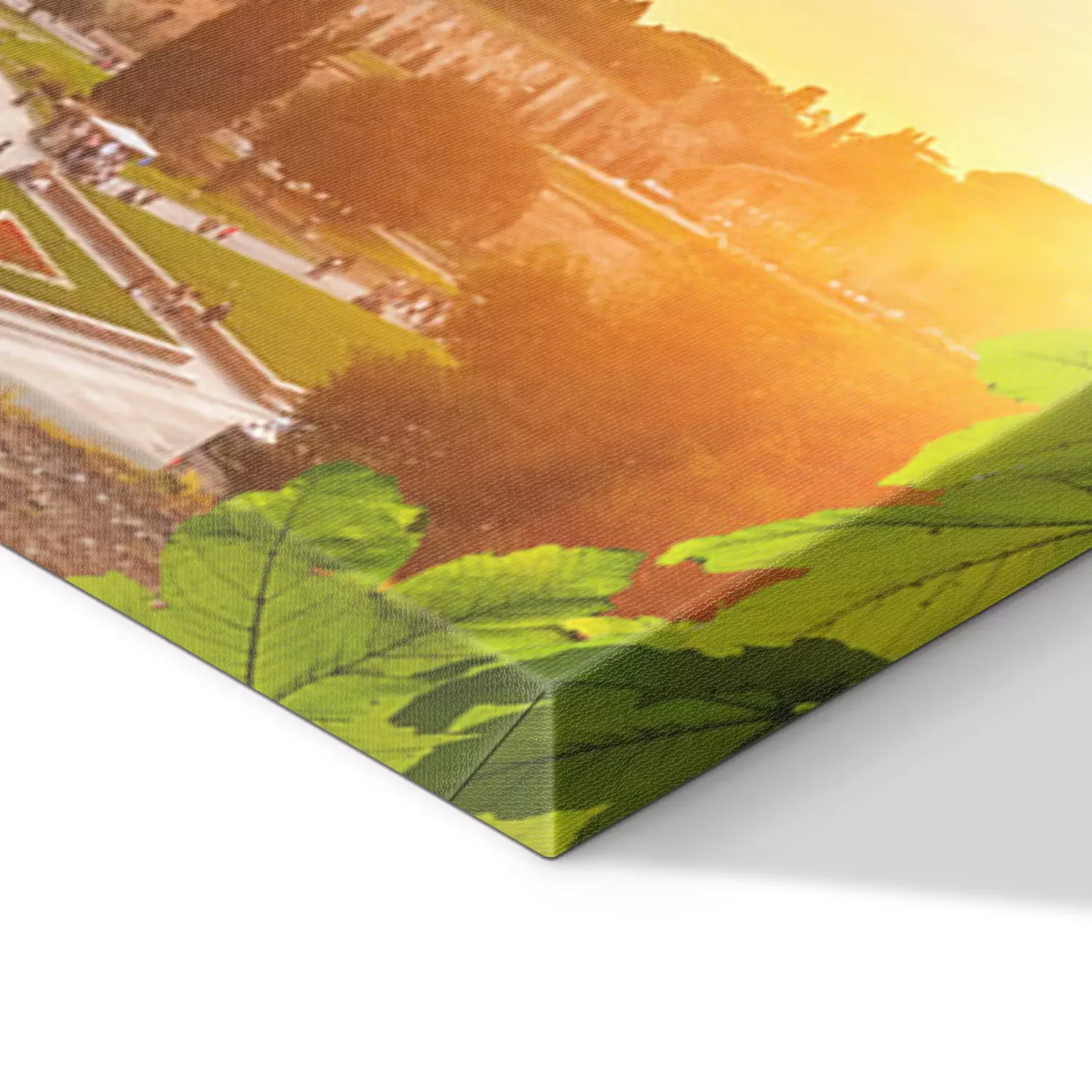 De print wordt aangebracht op hoogwaardig canvas dat op een schildersweefgetouw (spieraam) wordt gespannen. Omdat de print de zijranden bedekt, hoeft het ontwerp niet met een extra kader te worden omlijst. Wij raden ook composities aan die uit meerdere foto's bestaan en zo een coherente compositie vormen.