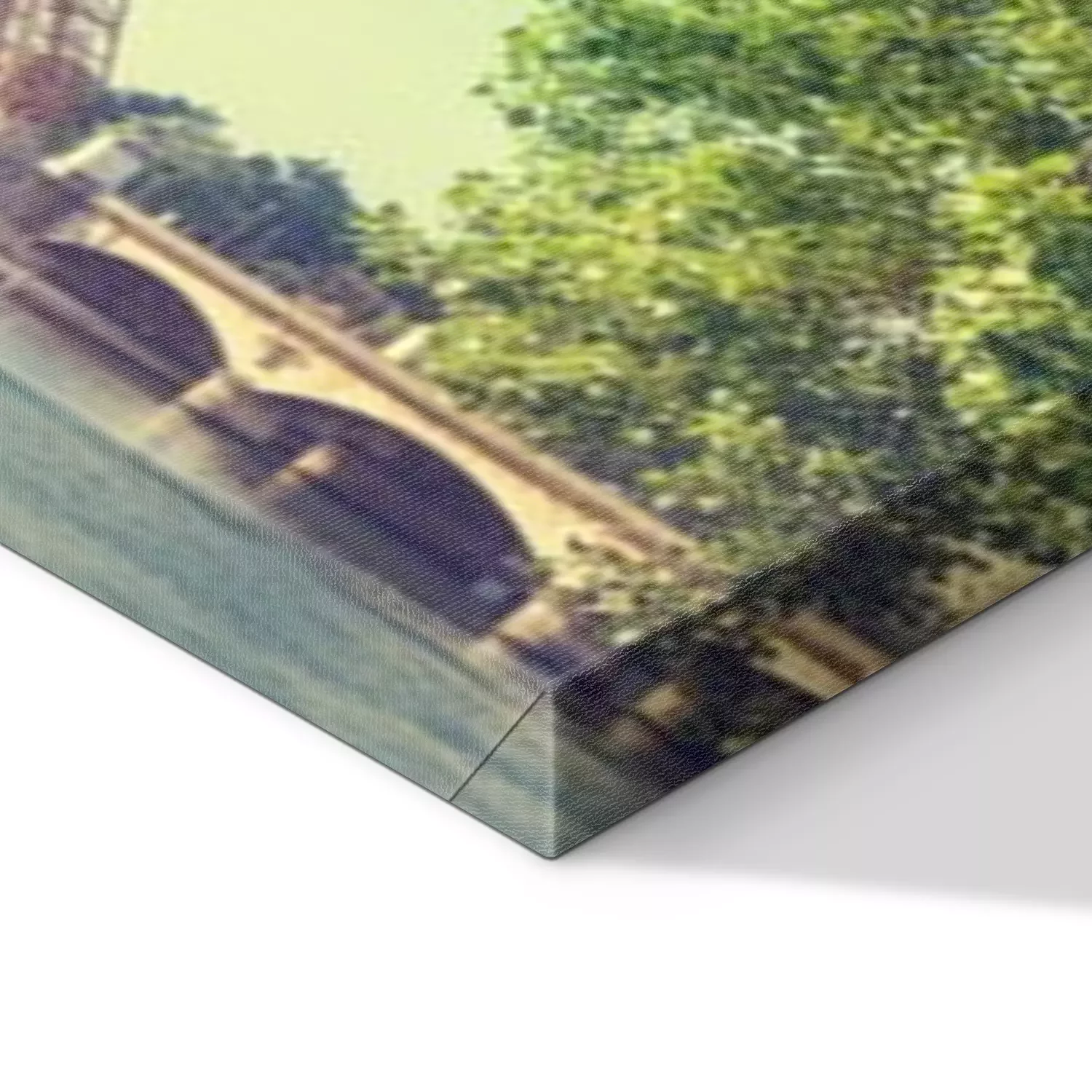 De print wordt aangebracht op hoogwaardig canvas dat op een schildersweefgetouw (spieraam) wordt gespannen. Omdat de print de zijranden bedekt, hoeft het ontwerp niet met een extra kader te worden omlijst. Wij raden ook composities aan die uit meerdere foto's bestaan en zo een coherente compositie vormen.