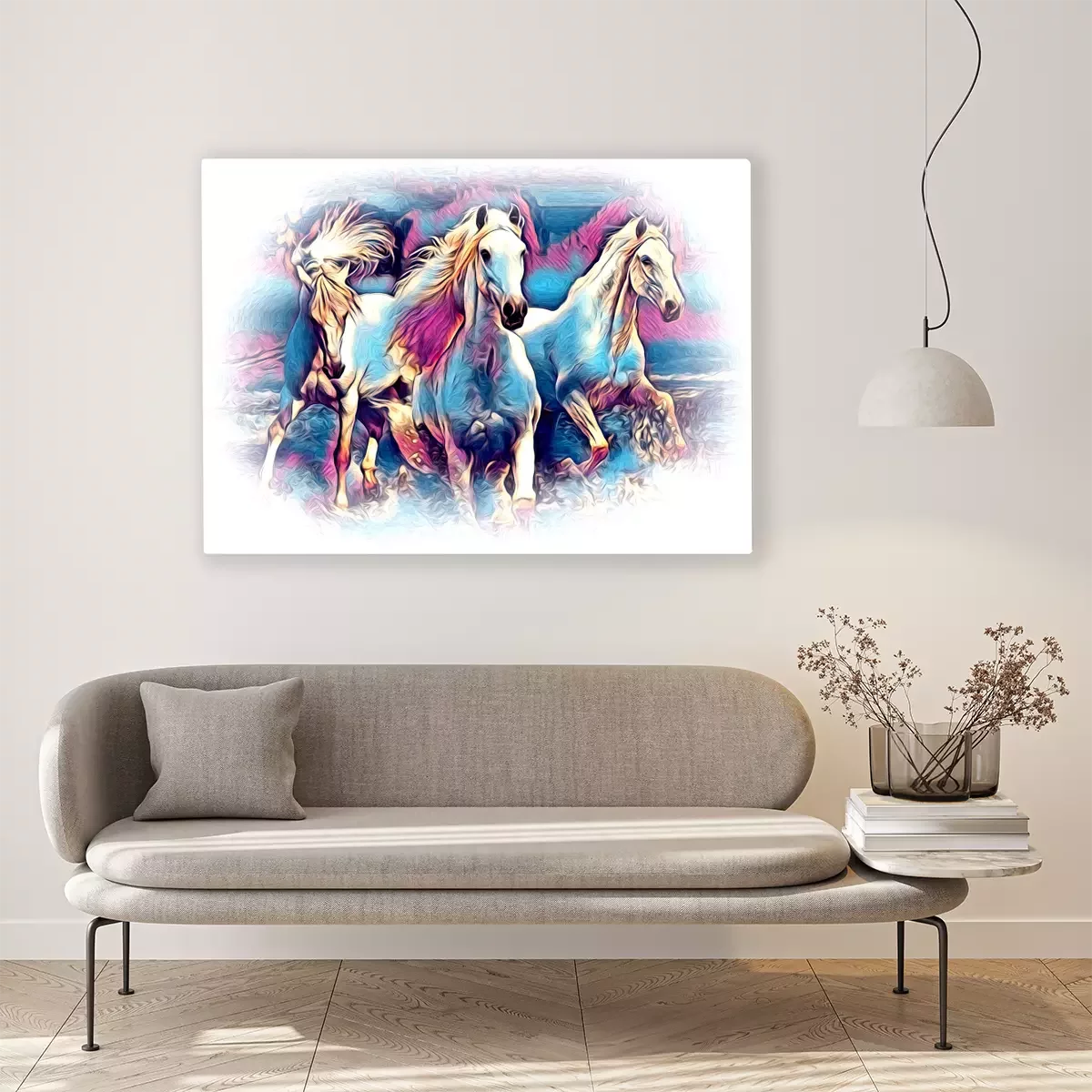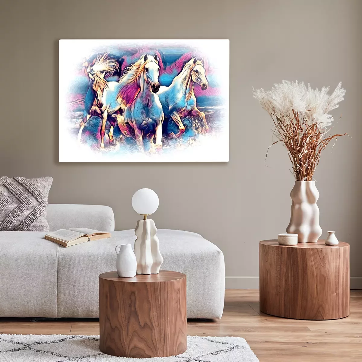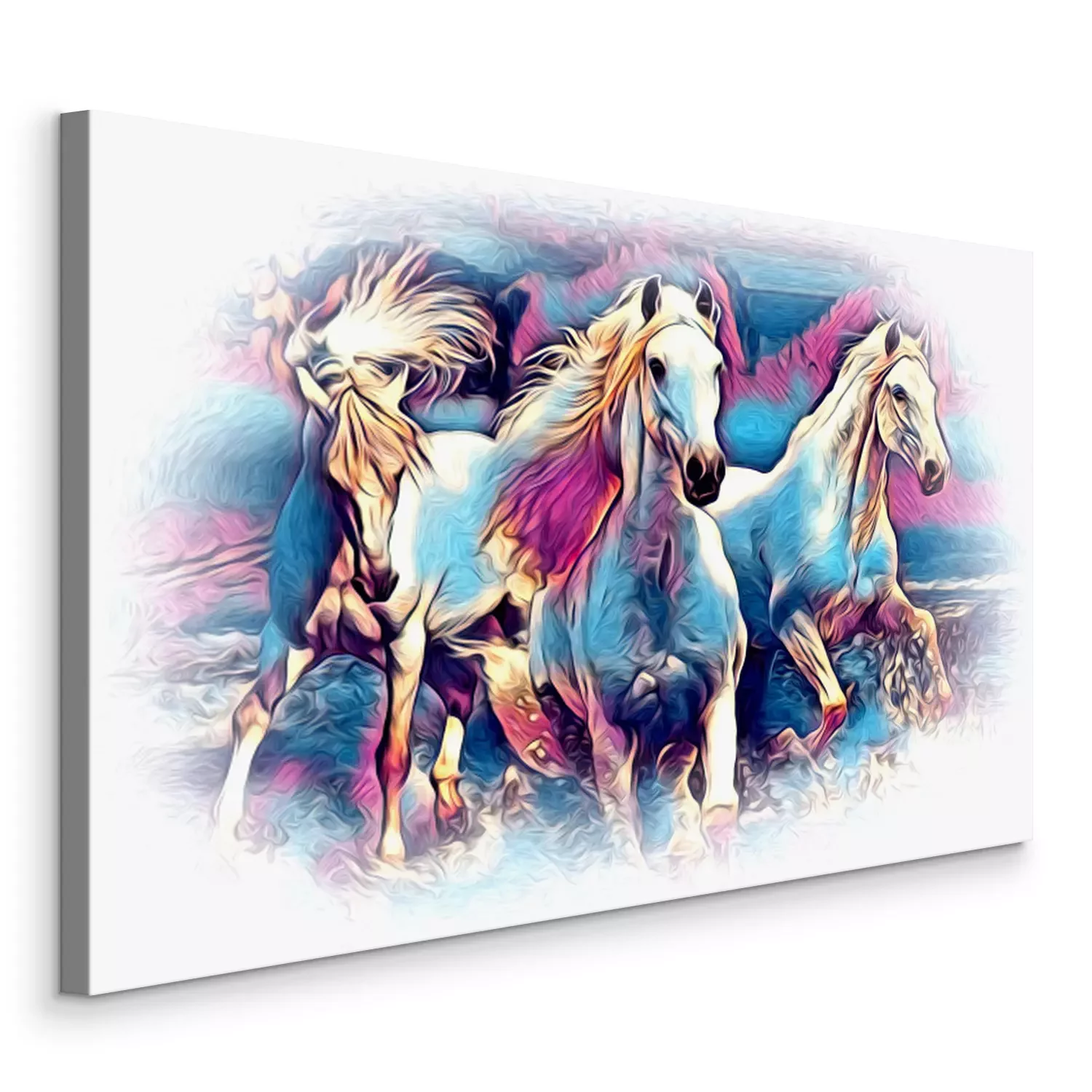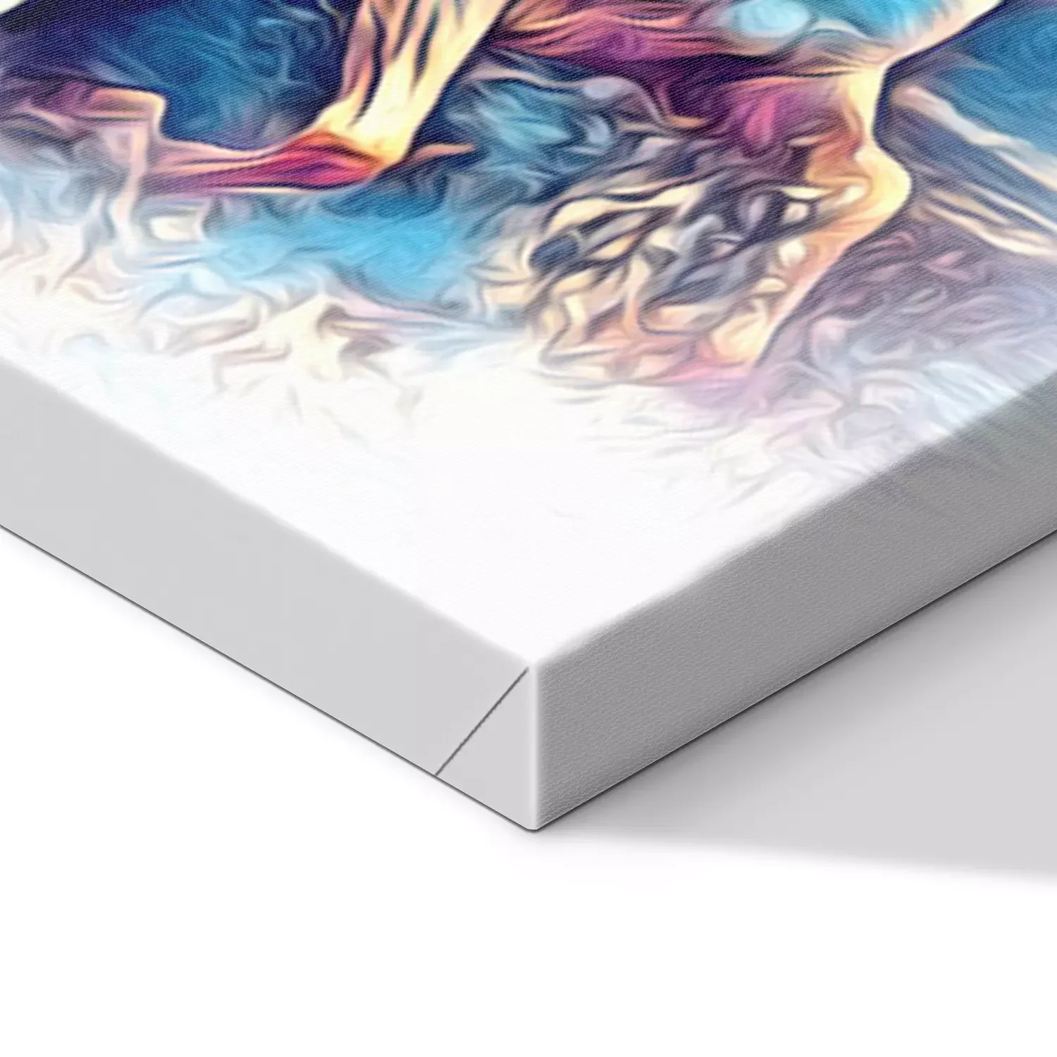 De print wordt aangebracht op hoogwaardig canvas dat op een schildersweefgetouw (spieraam) wordt gespannen. Omdat de print de zijranden bedekt, hoeft het ontwerp niet met een extra kader te worden omlijst. Wij raden ook composities aan die uit meerdere foto's bestaan en zo een coherente compositie vormen.