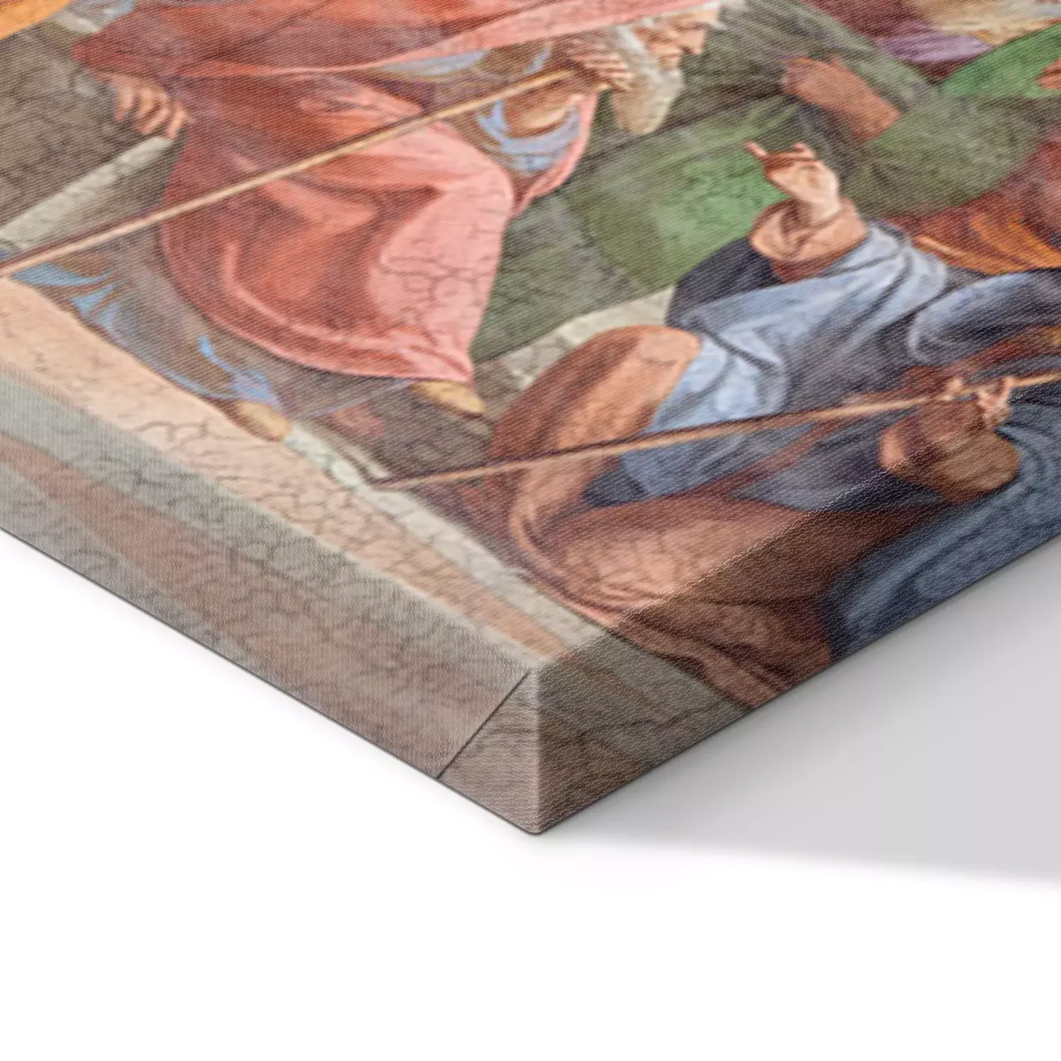 De print wordt aangebracht op hoogwaardig canvas dat op een schildersweefgetouw (spieraam) wordt gespannen. Omdat de print de zijranden bedekt, hoeft het ontwerp niet met een extra kader te worden omlijst. Wij raden ook composities aan die uit meerdere foto's bestaan en zo een coherente compositie vormen.