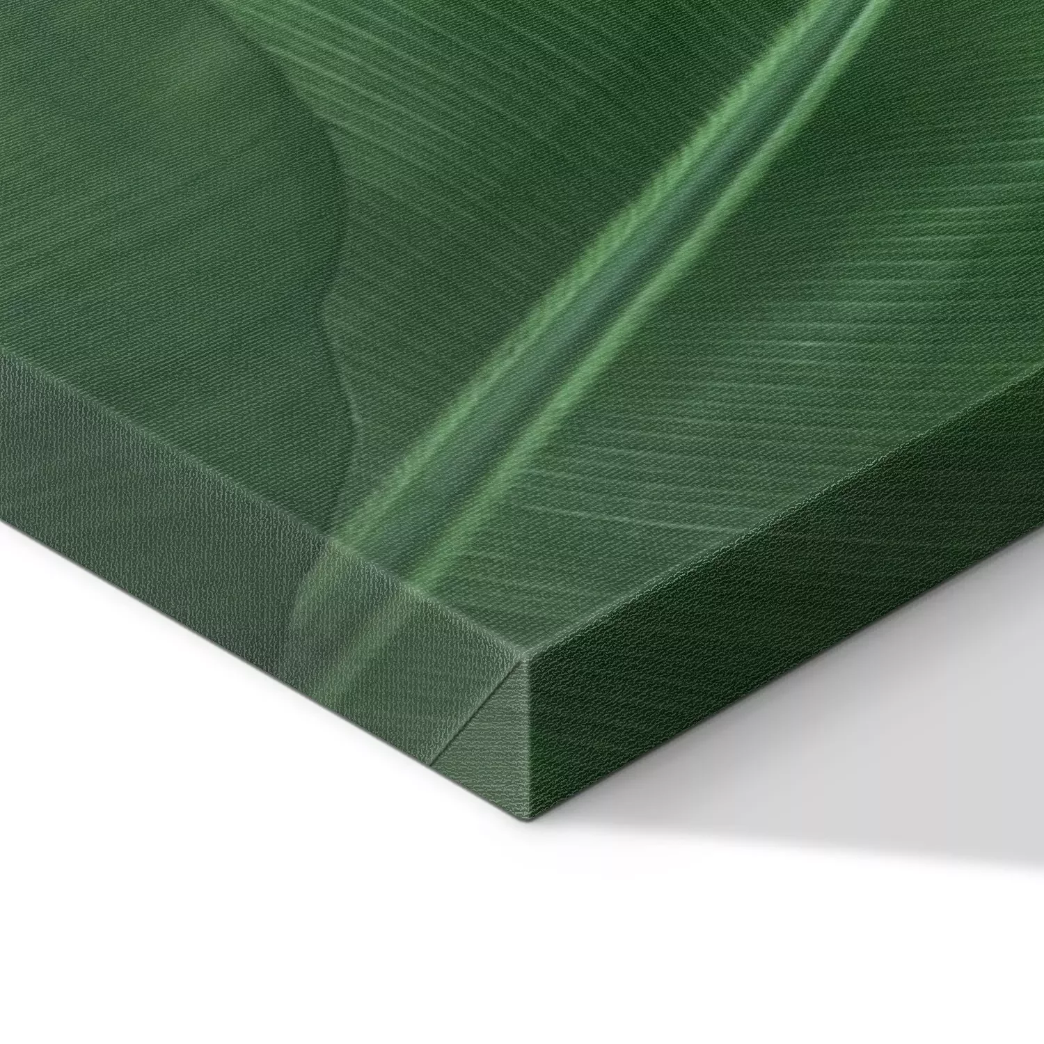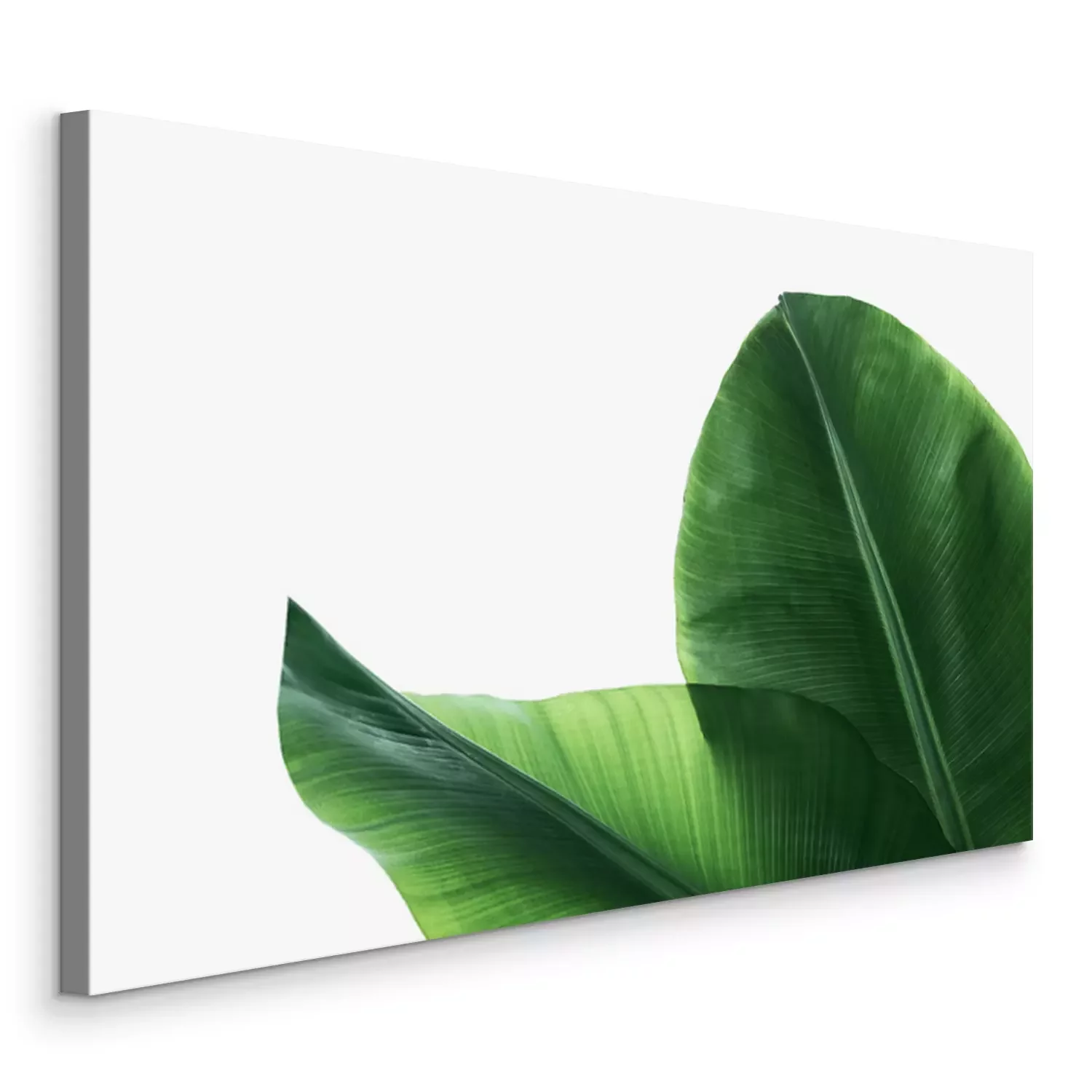 Canvas Fresh green banana leaves on white background, top view. Tropical foliage