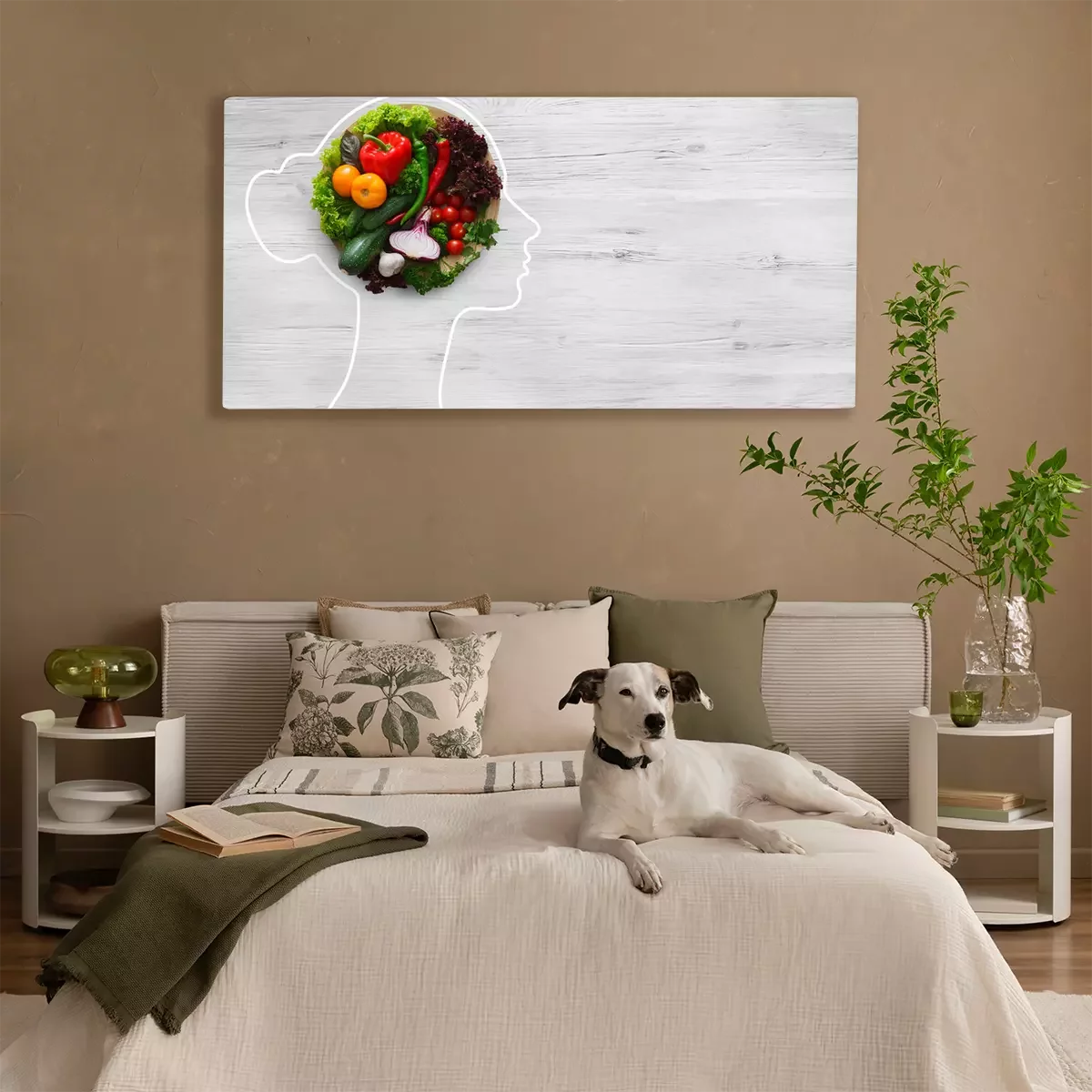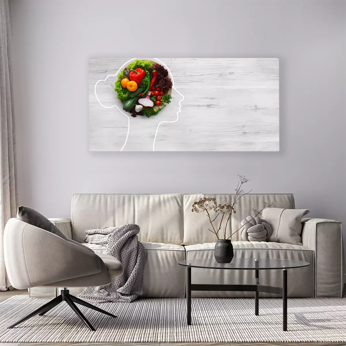 Canvas Fresh vegetables in woman head symbolizing health nutrition