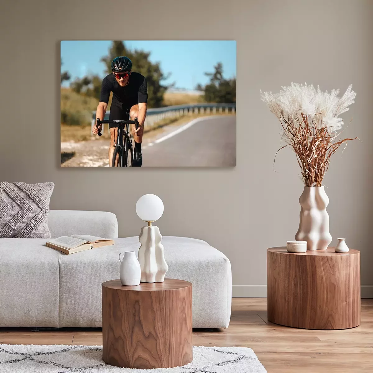 De print wordt aangebracht op hoogwaardig canvas dat op een schildersweefgetouw (spieraam) wordt gespannen. Omdat de print de zijranden bedekt, hoeft het ontwerp niet met een extra kader te worden omlijst. Wij raden ook composities aan die uit meerdere foto's bestaan en zo een coherente compositie vormen.