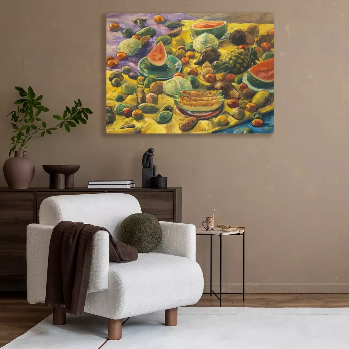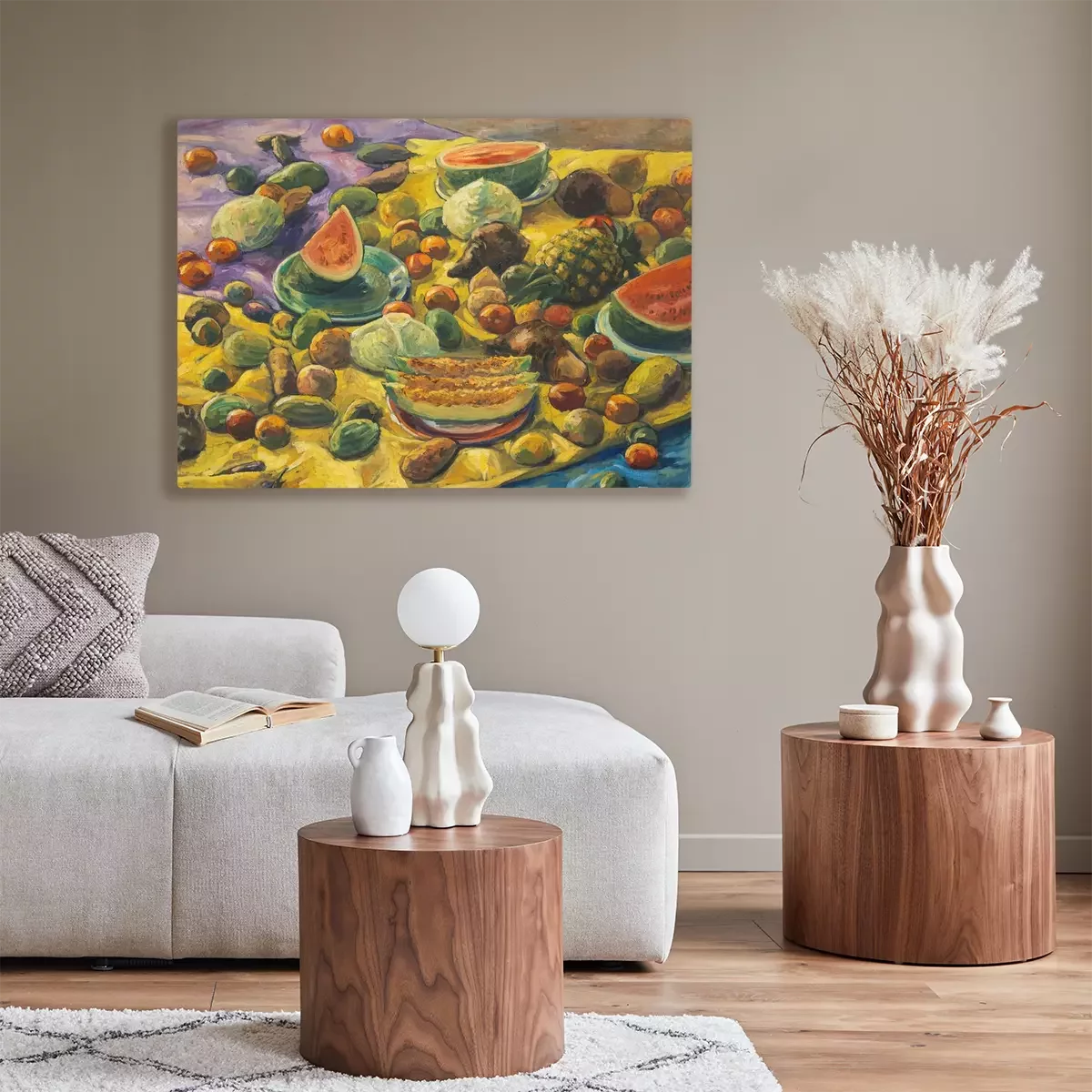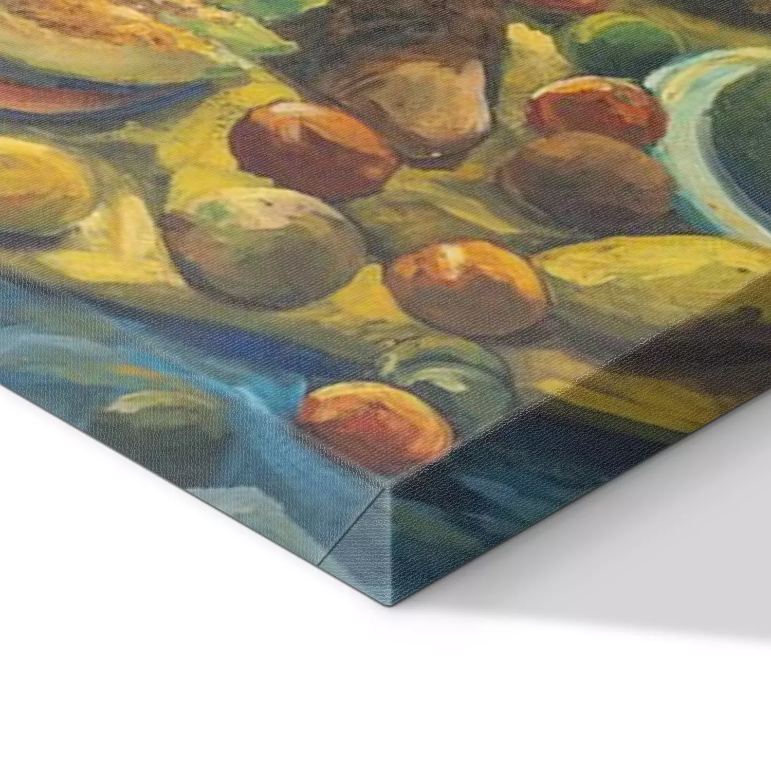 De print wordt aangebracht op hoogwaardig canvas dat op een schildersweefgetouw (spieraam) wordt gespannen. Omdat de print de zijranden bedekt, hoeft het ontwerp niet met een extra kader te worden omlijst. Wij raden ook composities aan die uit meerdere foto's bestaan en zo een coherente compositie vormen.