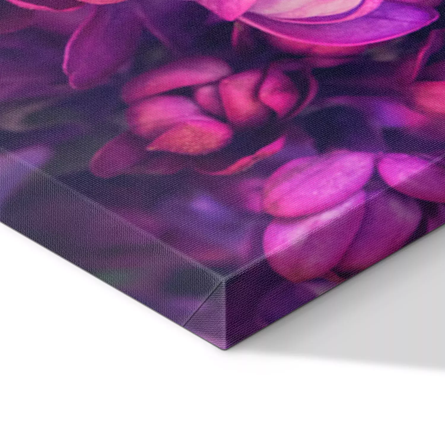 De print wordt aangebracht op hoogwaardig canvas dat op een schildersweefgetouw (spieraam) wordt gespannen. Omdat de print de zijranden bedekt, hoeft het ontwerp niet met een extra kader te worden omlijst. Wij raden ook composities aan die uit meerdere foto's bestaan en zo een coherente compositie vormen.