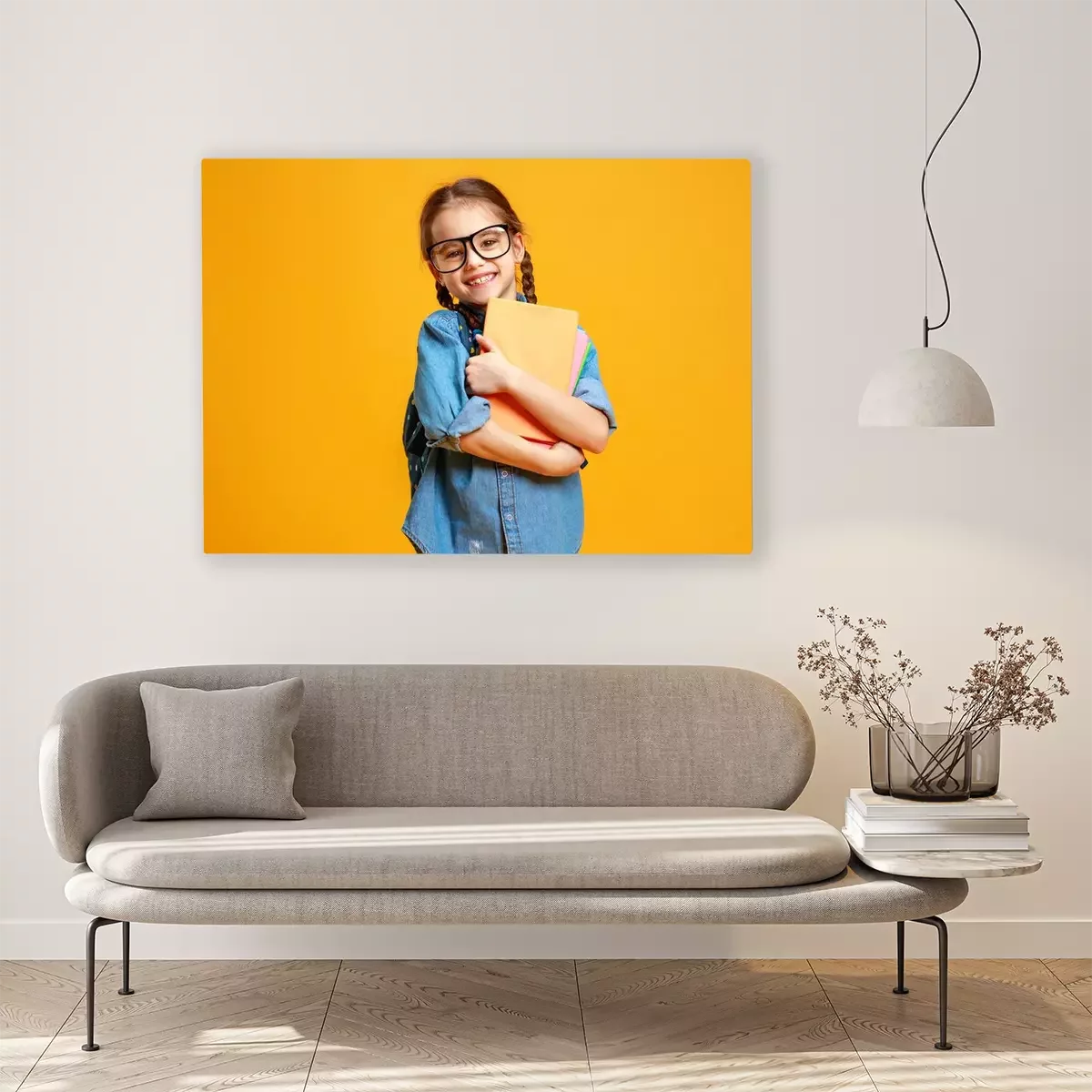 De print wordt aangebracht op hoogwaardig canvas dat op een schildersweefgetouw (spieraam) wordt gespannen. Omdat de print de zijranden bedekt, hoeft het ontwerp niet met een extra kader te worden omlijst. Wij raden ook composities aan die uit meerdere foto's bestaan en zo een coherente compositie vormen.