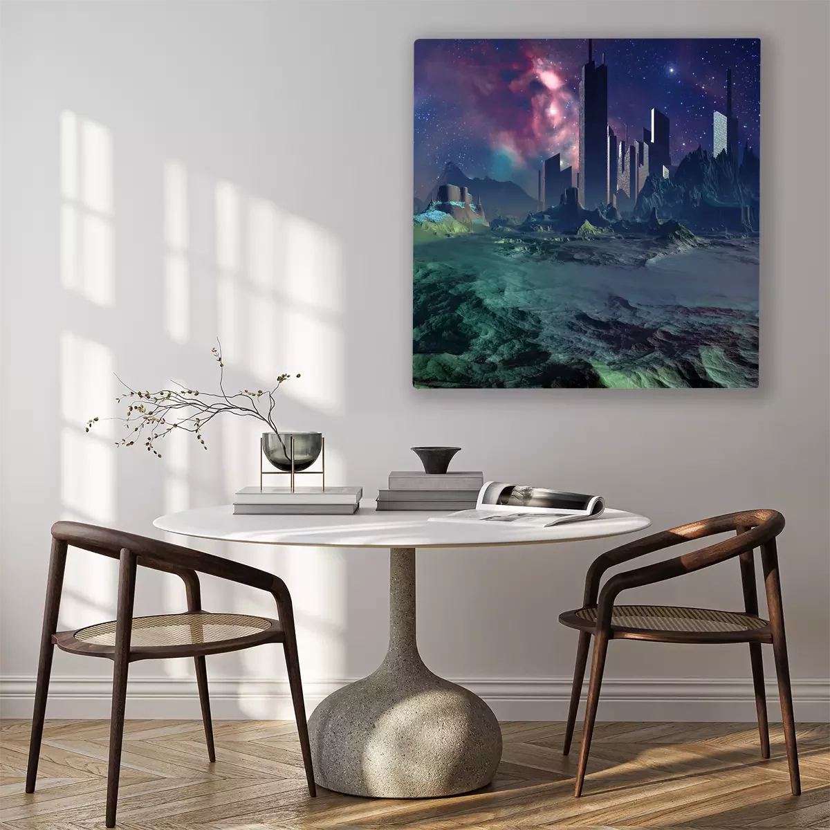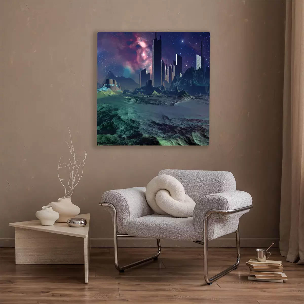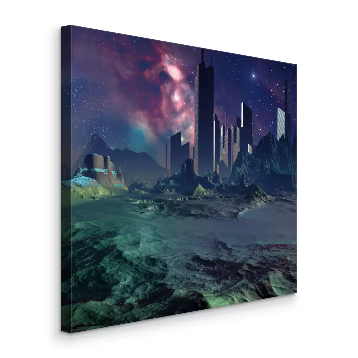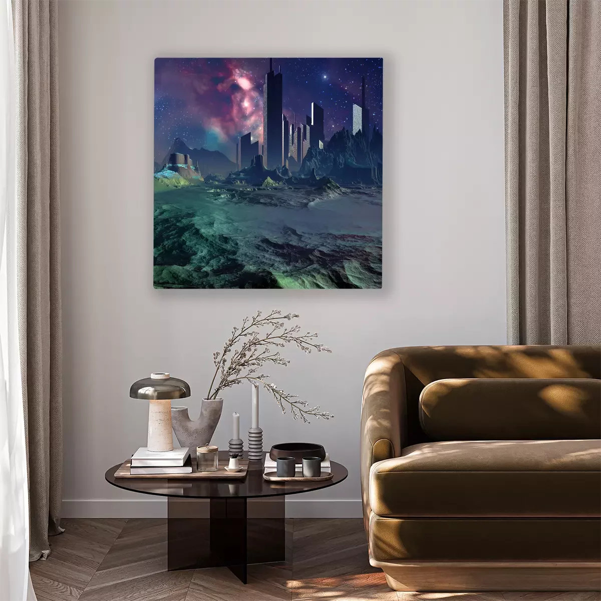 De print wordt aangebracht op hoogwaardig canvas dat op een schildersweefgetouw (spieraam) wordt gespannen. Omdat de print de zijranden bedekt, hoeft het ontwerp niet met een extra kader te worden omlijst. Wij raden ook composities aan die uit meerdere foto's bestaan en zo een coherente compositie vormen.