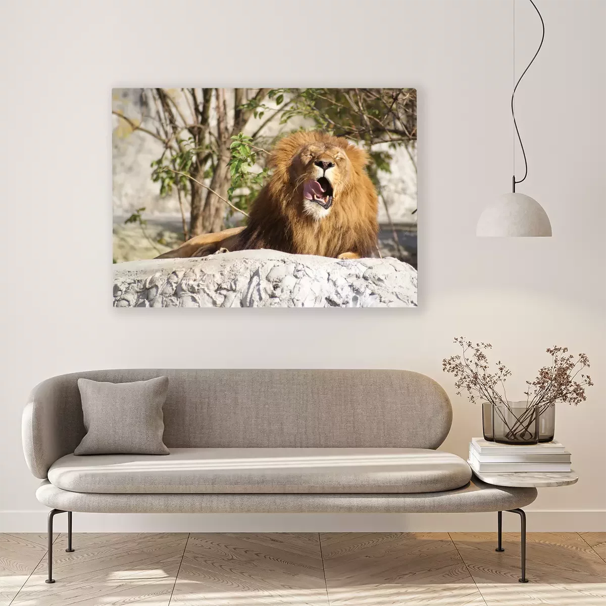 Canvas Gapende leeuw