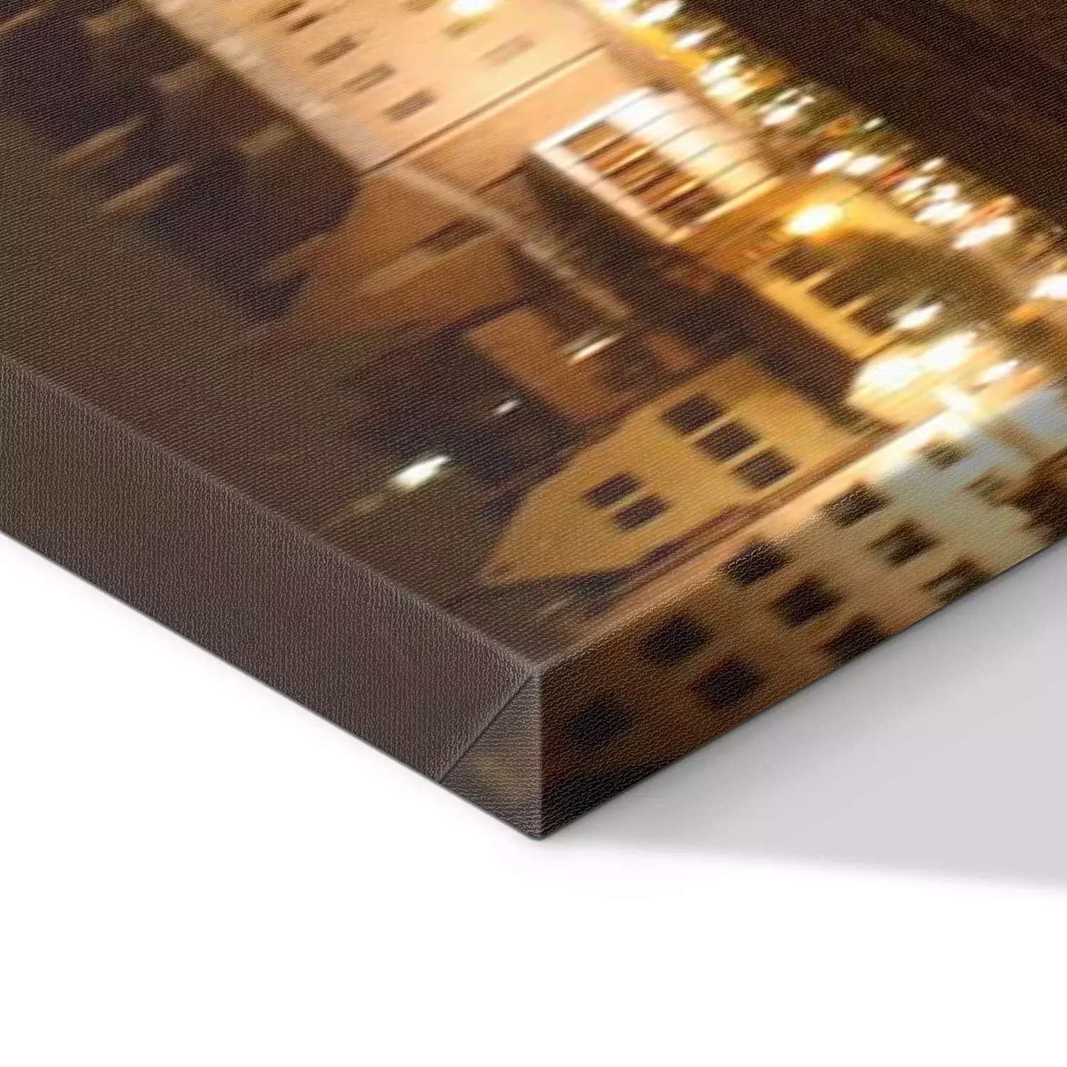 De print wordt aangebracht op hoogwaardig canvas dat op een schildersweefgetouw (spieraam) wordt gespannen. Omdat de print de zijranden bedekt, hoeft het ontwerp niet met een extra kader te worden omlijst. Wij raden ook composities aan die uit meerdere foto's bestaan en zo een coherente compositie vormen.