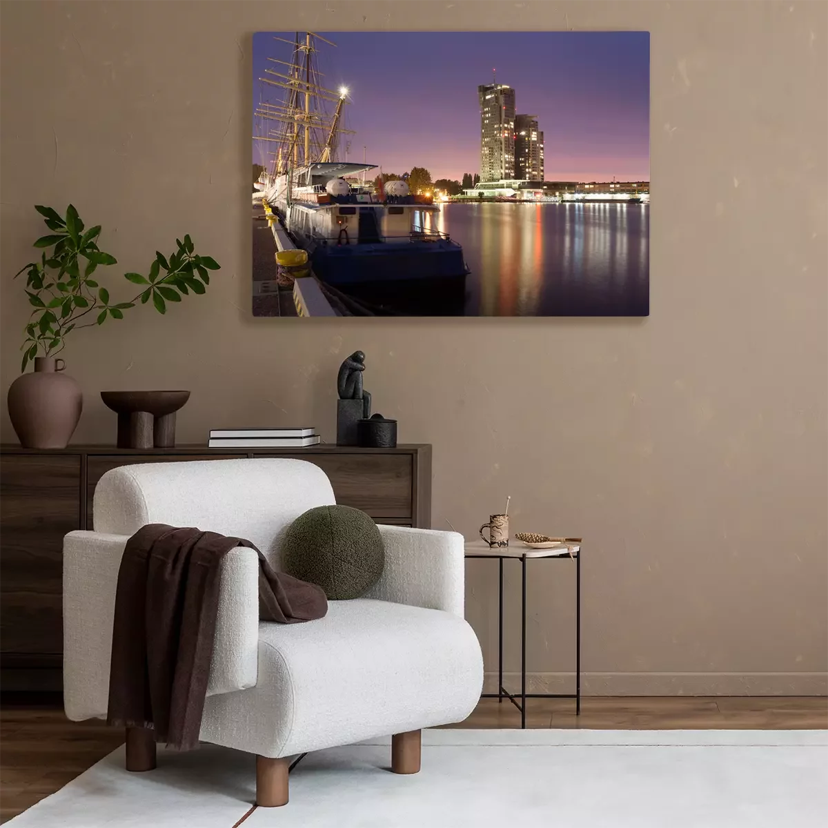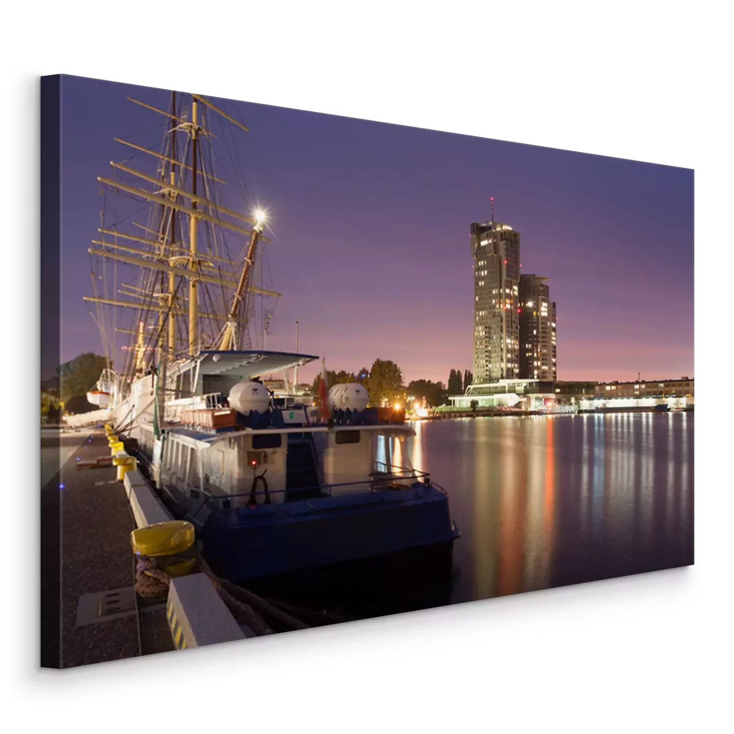 Canvas: Gdynia haven met uitzicht op de zee torens