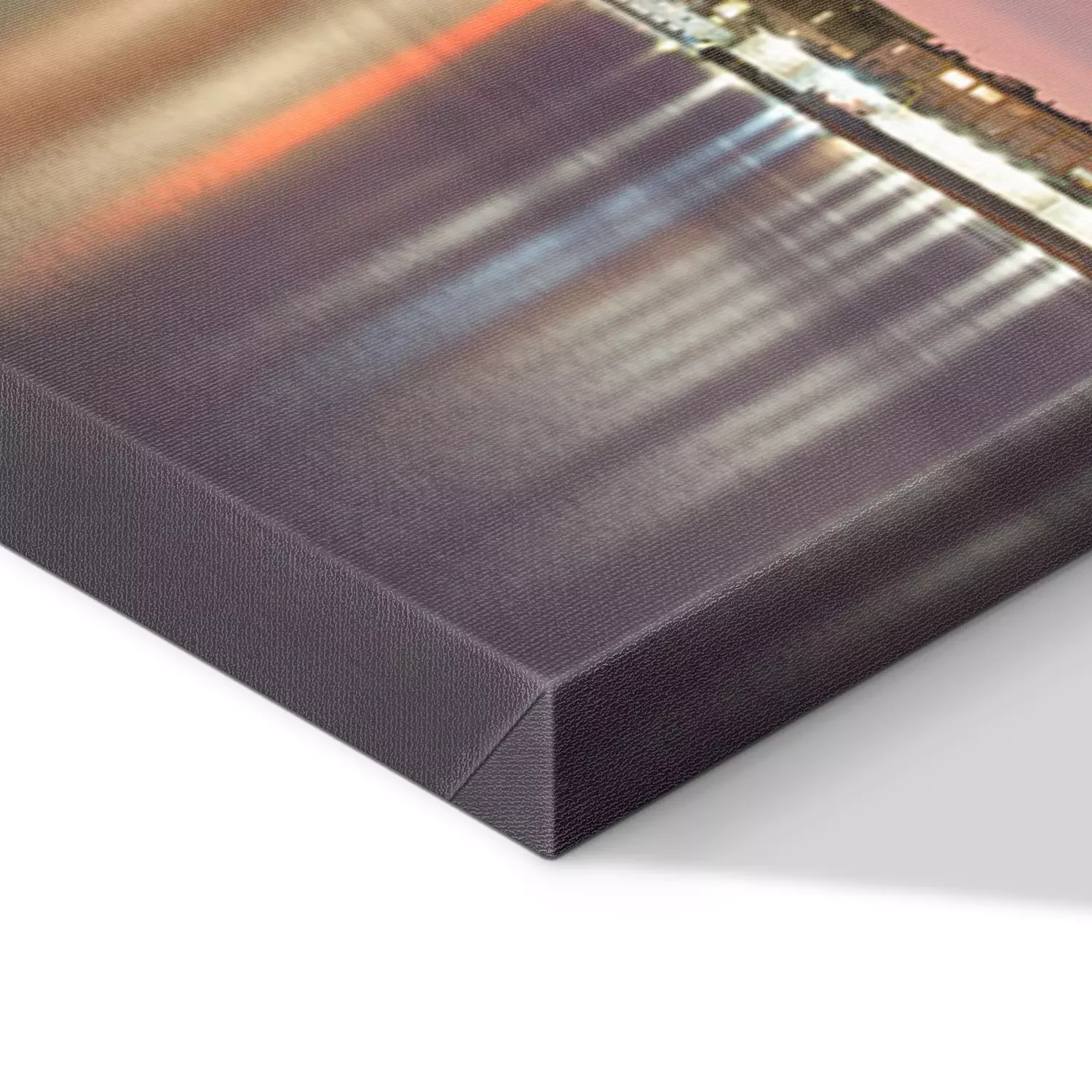 De print wordt aangebracht op hoogwaardig canvas dat op een schildersweefgetouw (spieraam) wordt gespannen. Omdat de print de zijranden bedekt, hoeft het ontwerp niet met een extra kader te worden omlijst. Wij raden ook composities aan die uit meerdere foto's bestaan en zo een coherente compositie vormen.