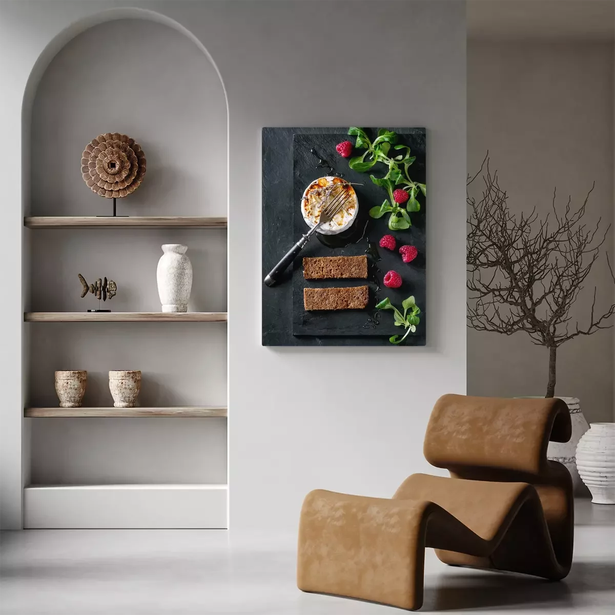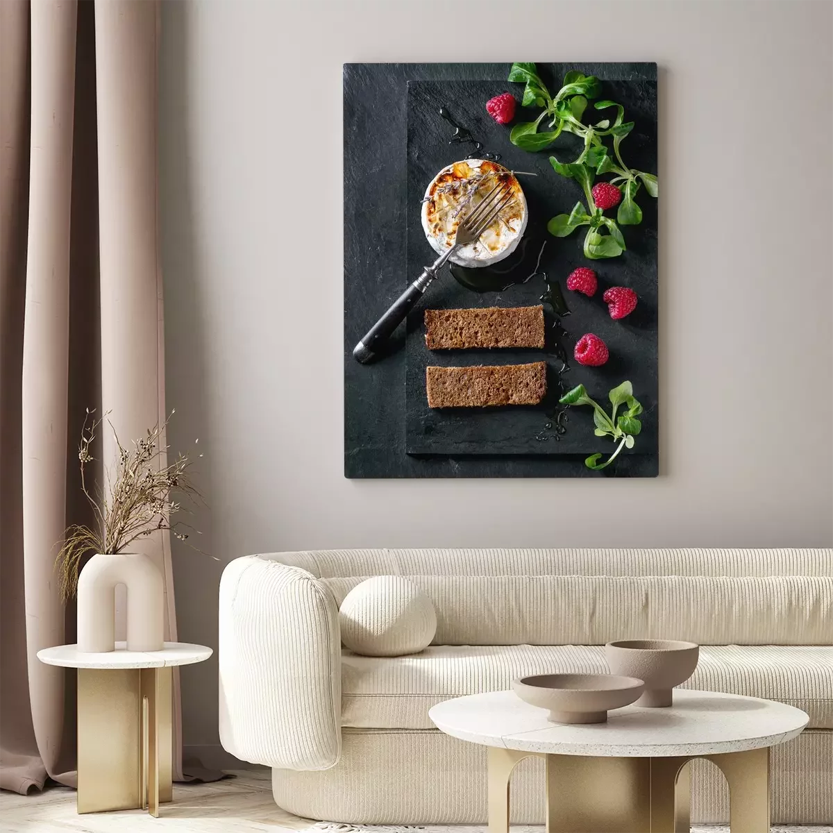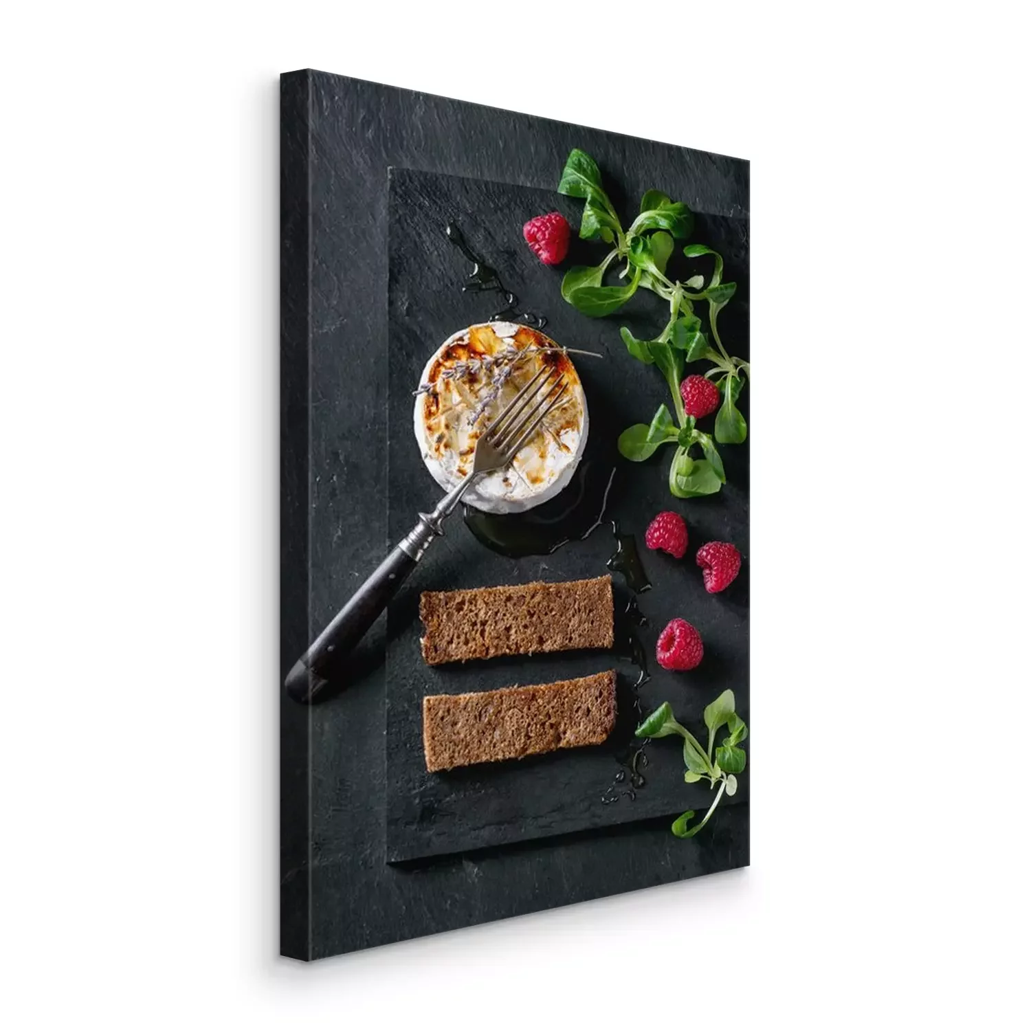 Canvas Gebakken geitenkaas met honing en frambozen