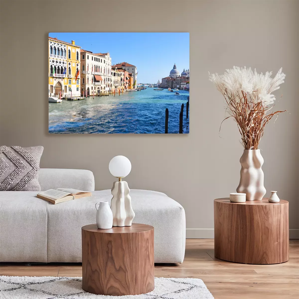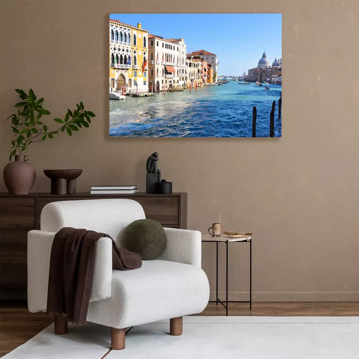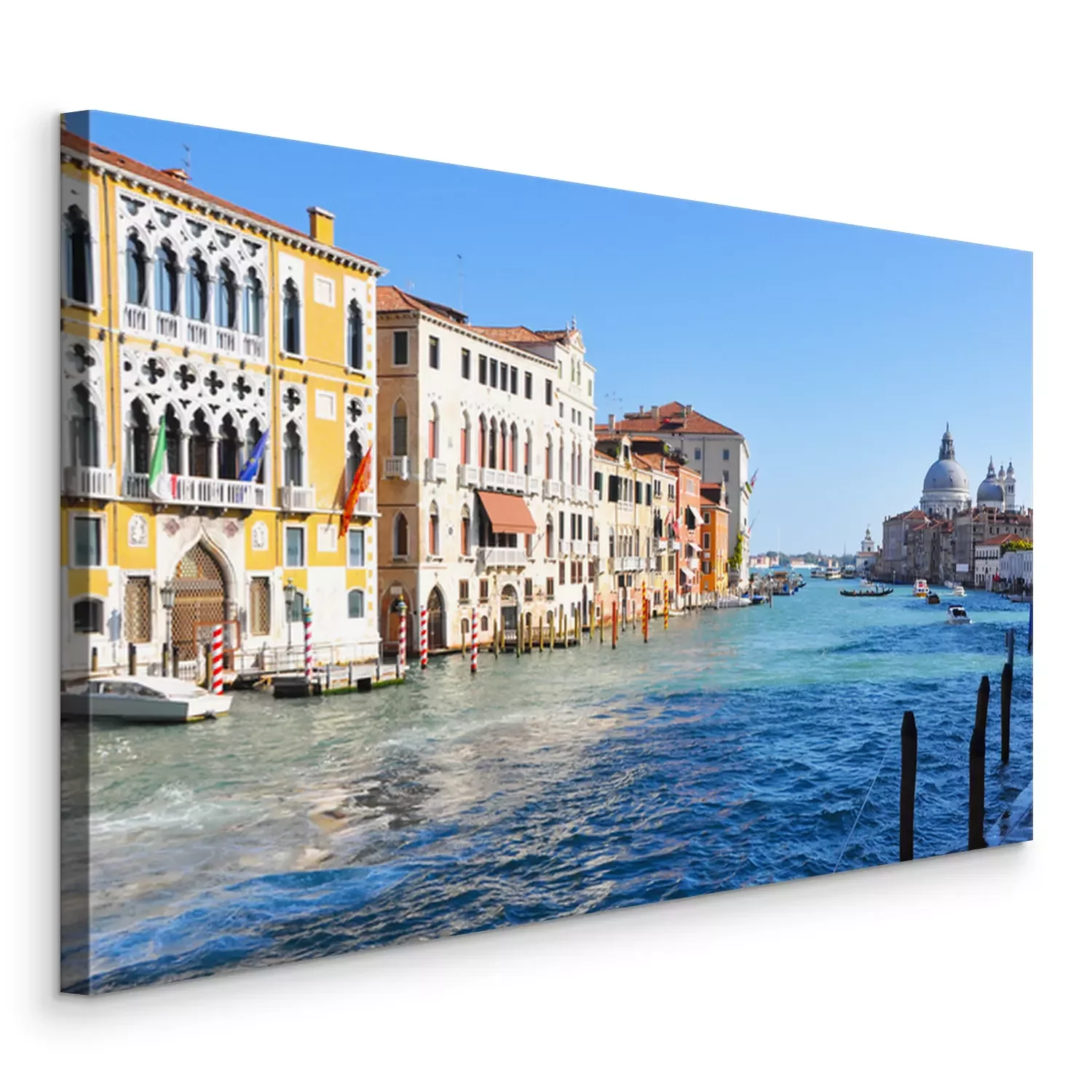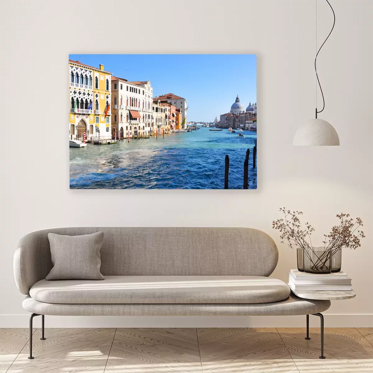 Canvas: Gebouwen en boten op het Venetiaanse kanaal