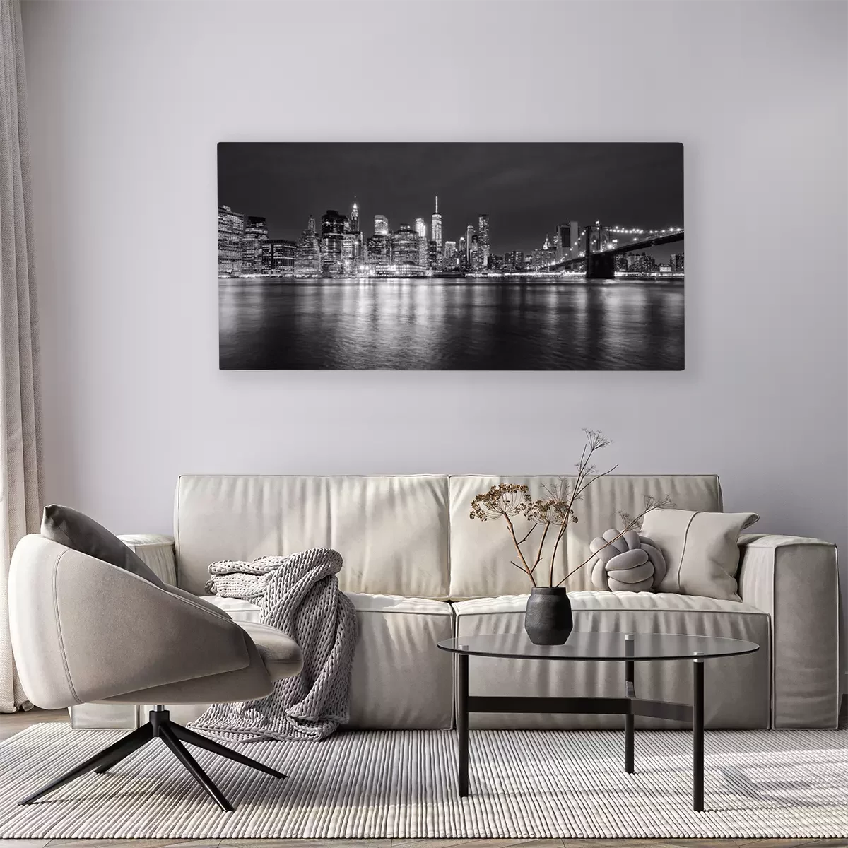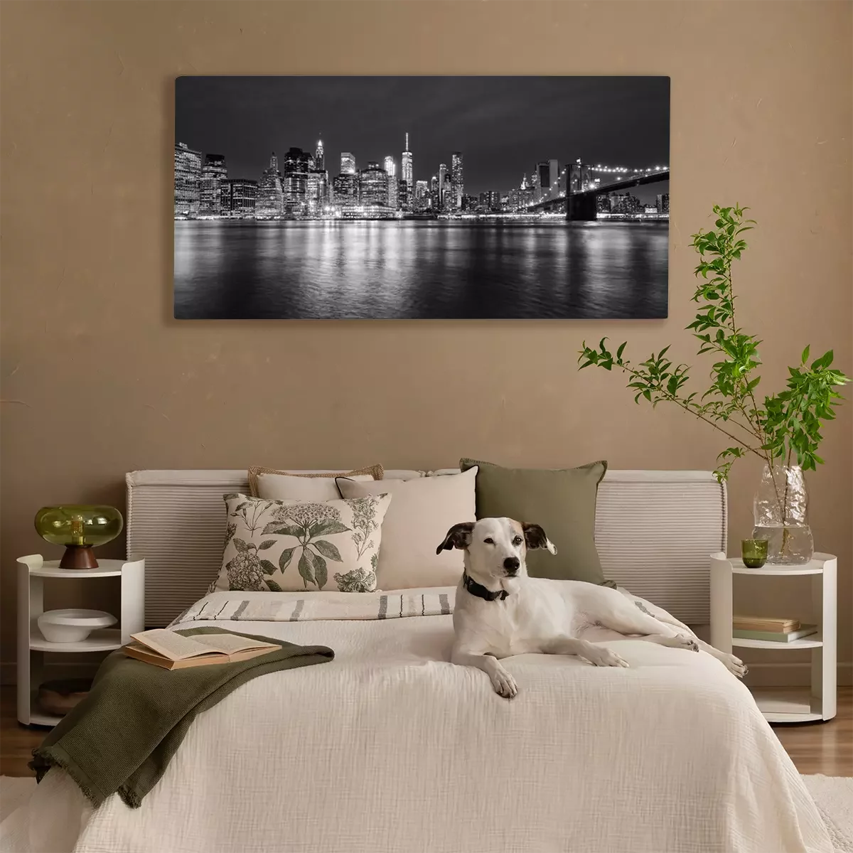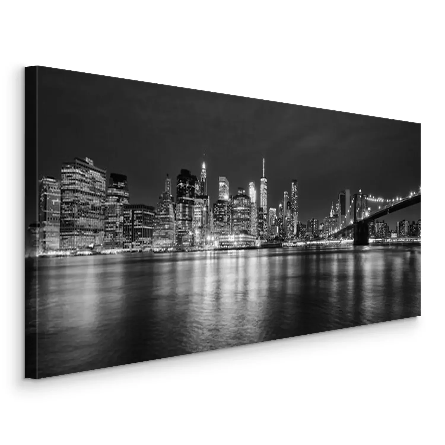 Brooklyn Bridge en Manhattan nachtzicht in zwart-wit