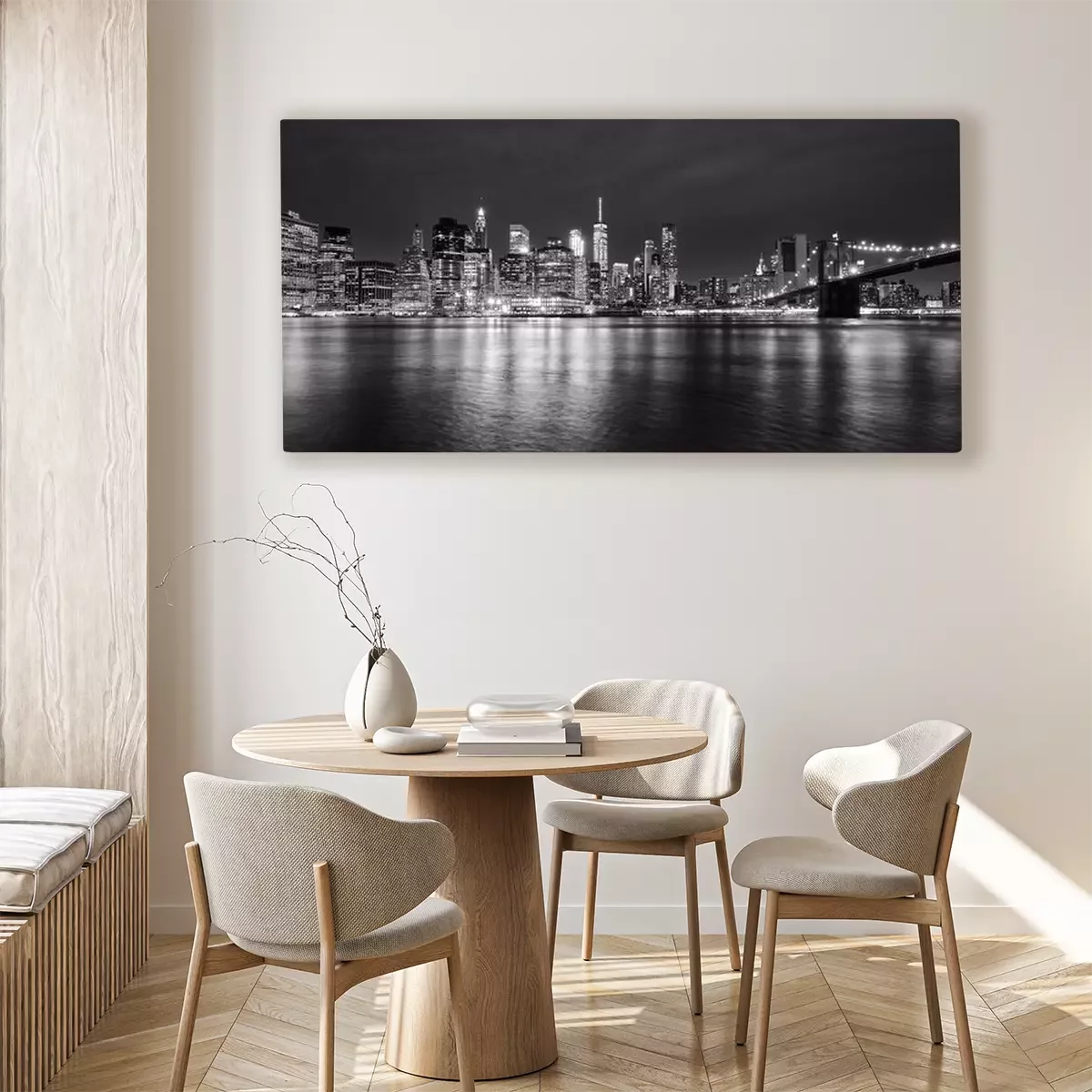 Zwart en wit Manhattan aan het water 's nachts, NYC.