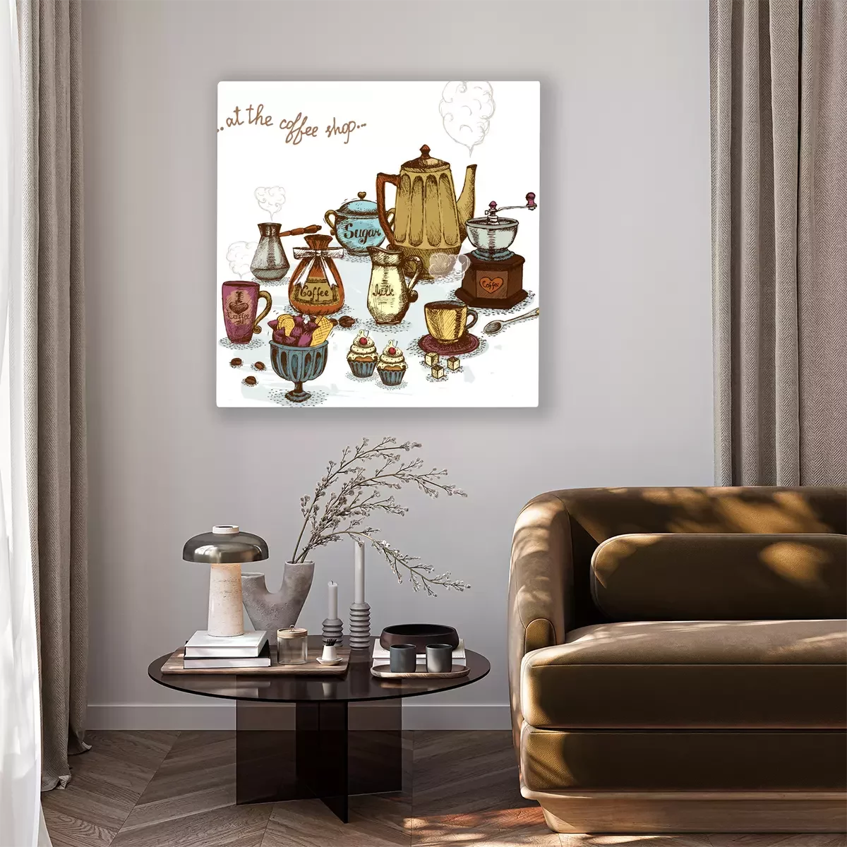 Canvas: Gebruiksvoorwerpen voor het zetten van koffie