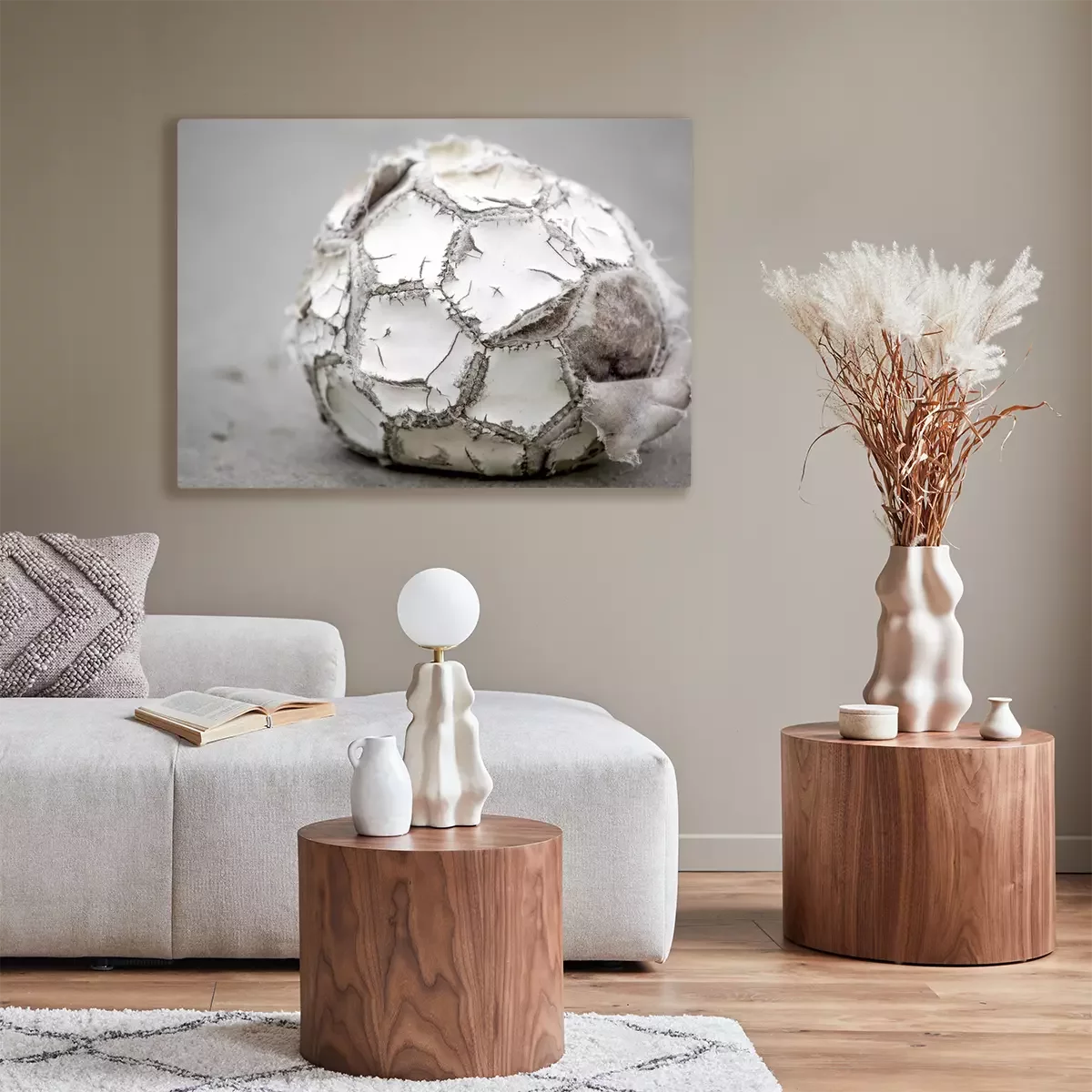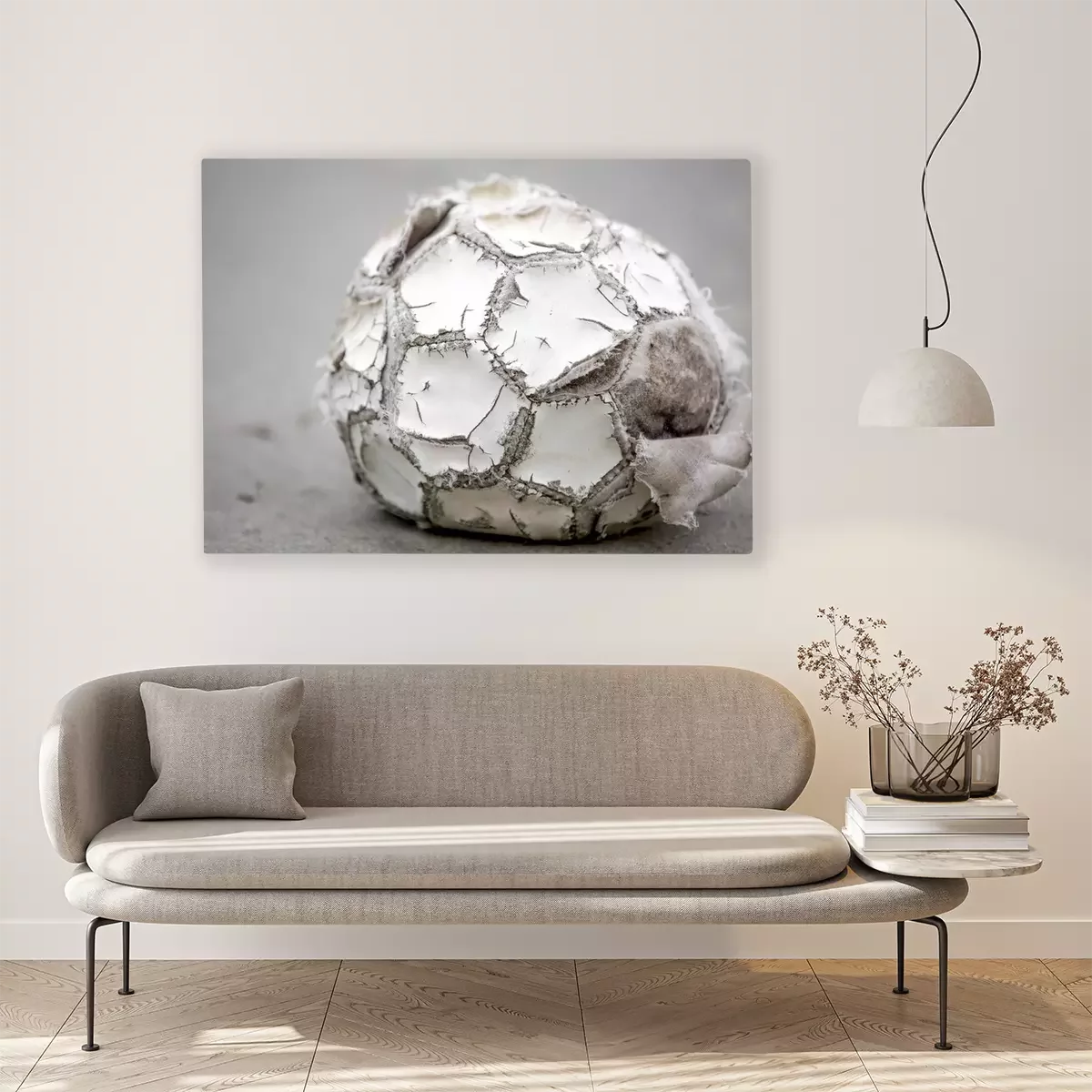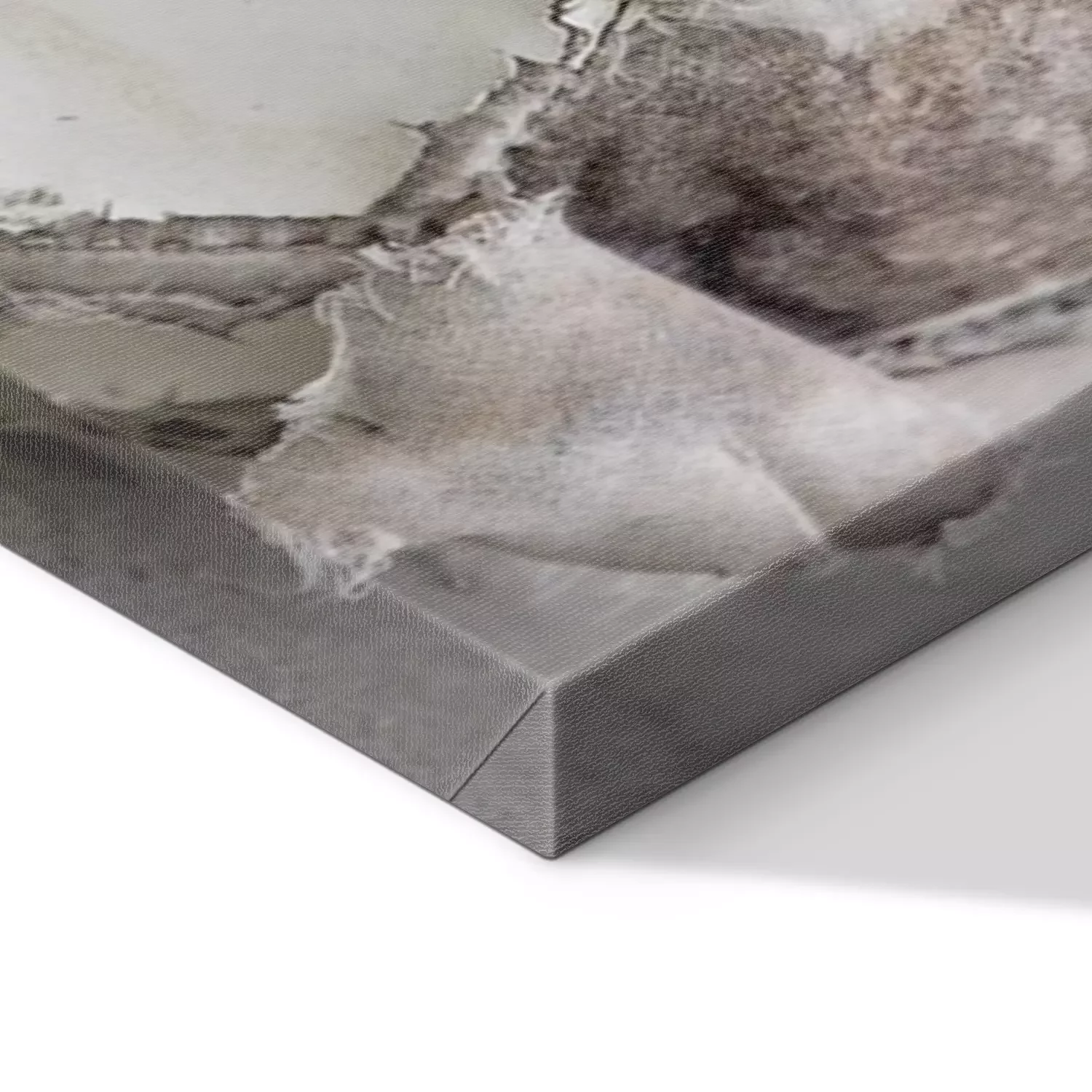 De print wordt aangebracht op hoogwaardig canvas dat op een schildersweefgetouw (spieraam) wordt gespannen. Omdat de print de zijranden bedekt, hoeft het ontwerp niet met een extra kader te worden omlijst. Wij raden ook composities aan die uit meerdere foto's bestaan en zo een coherente compositie vormen.