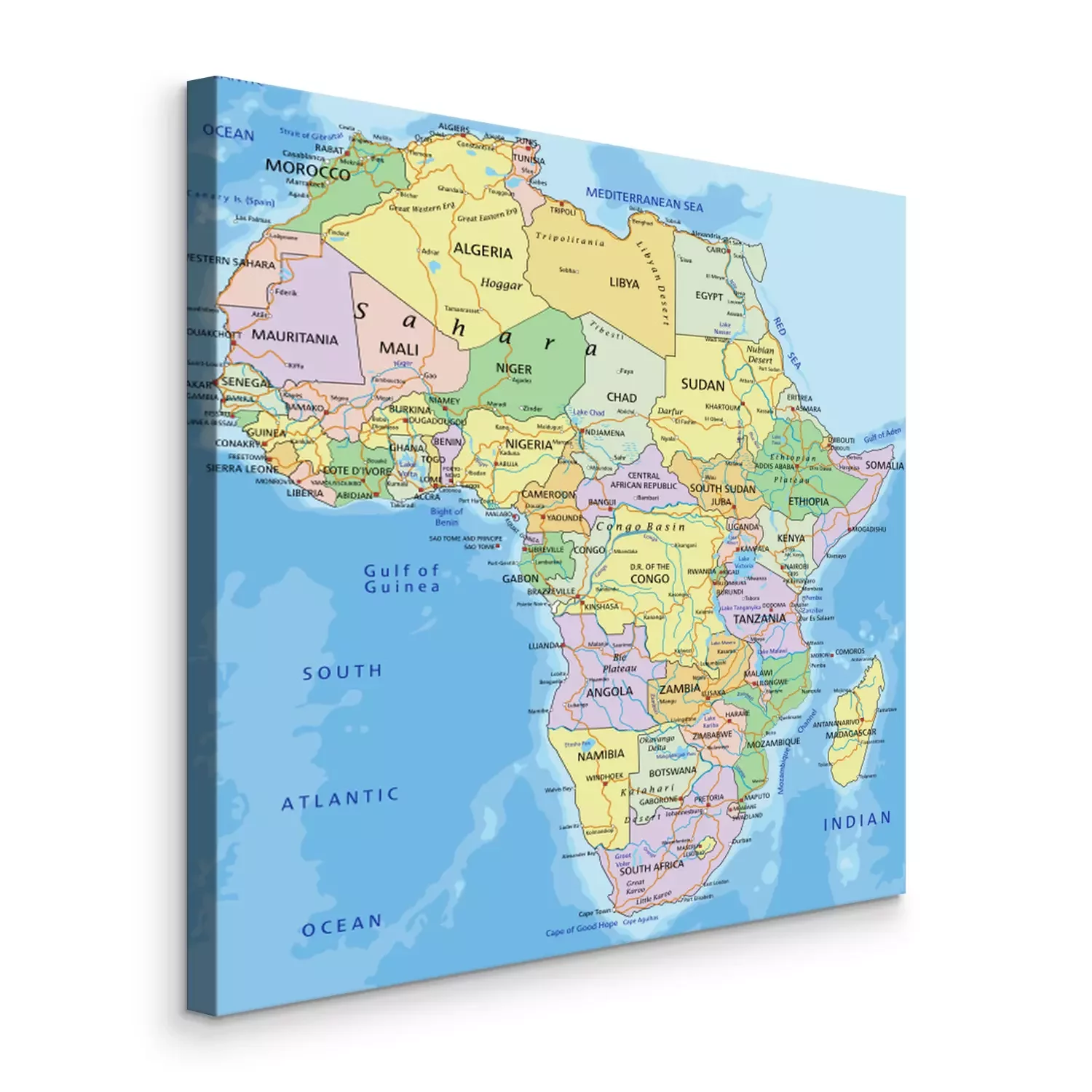 Canvas: Gedetailleerde politieke kaart van Afrika