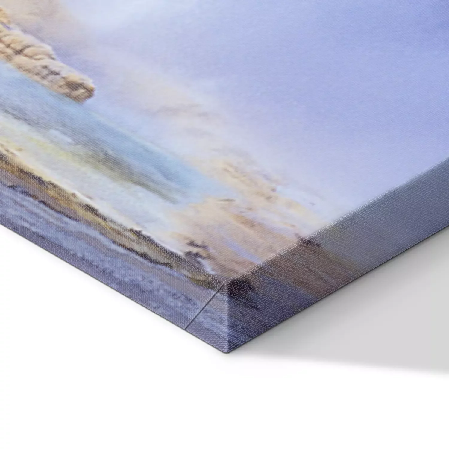 De print wordt aangebracht op hoogwaardig canvas dat op een schildersweefgetouw (spieraam) wordt gespannen. Omdat de print de zijranden bedekt, hoeft het ontwerp niet met een extra kader te worden omlijst. Wij raden ook composities aan die uit meerdere foto's bestaan en zo een coherente compositie vormen.