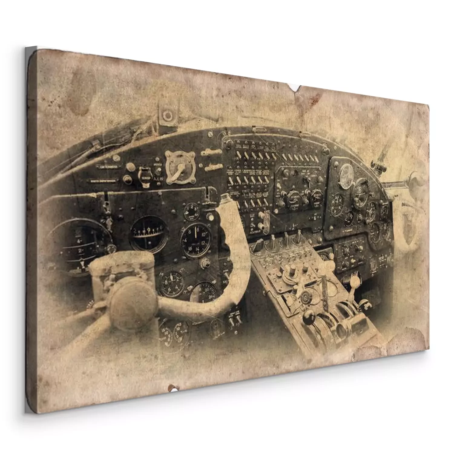 Canvas: Geïsoleerde vintage militaire postkaart, cockpit