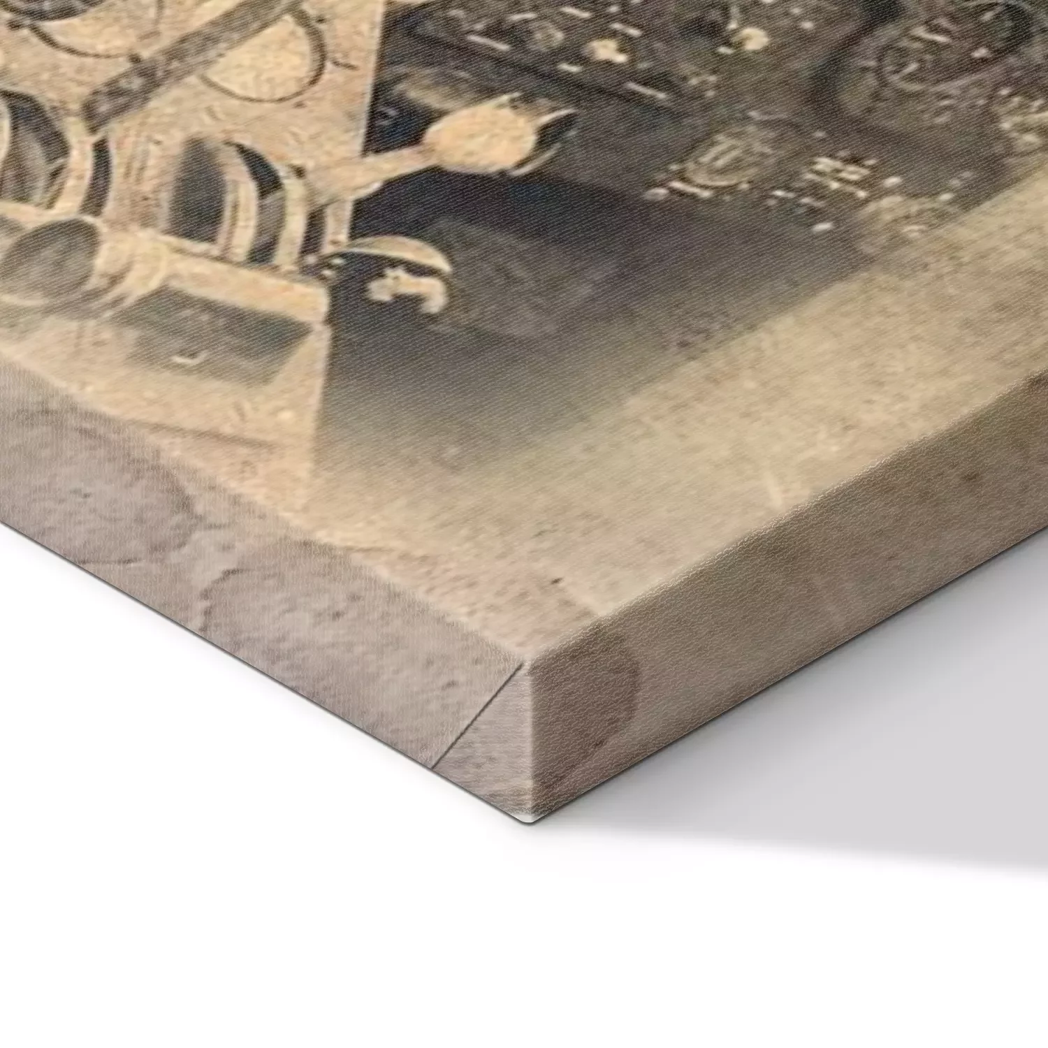 De print wordt aangebracht op hoogwaardig canvas dat op een schildersweefgetouw (spieraam) wordt gespannen. Omdat de print de zijranden bedekt, hoeft het ontwerp niet met een extra kader te worden omlijst. Wij raden ook composities aan die uit meerdere foto's bestaan en zo een coherente compositie vormen.