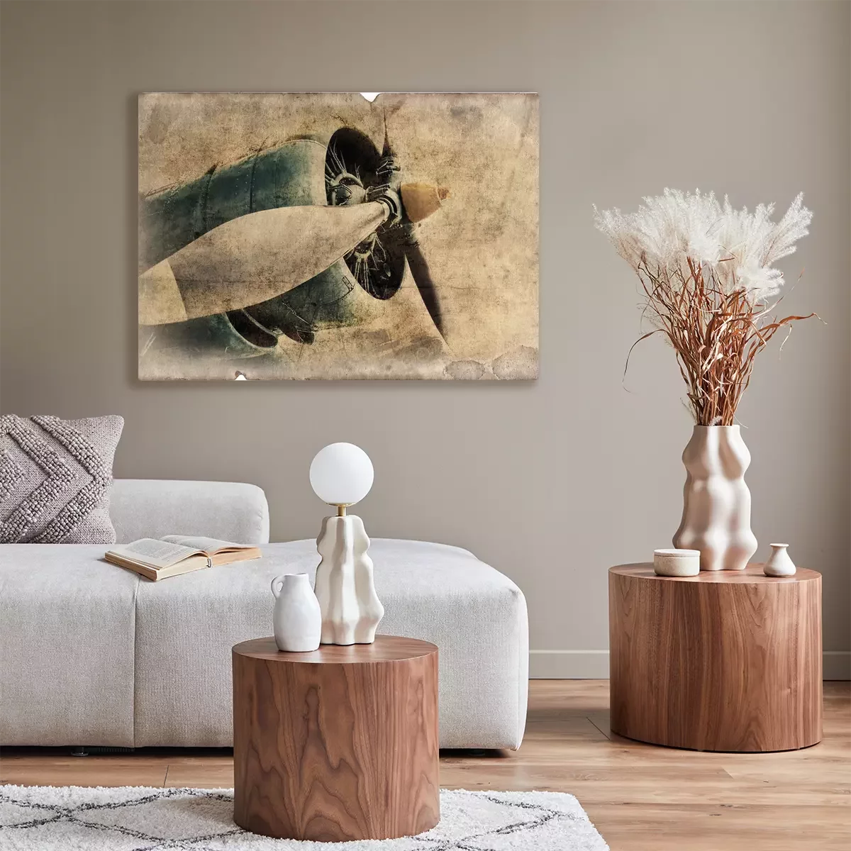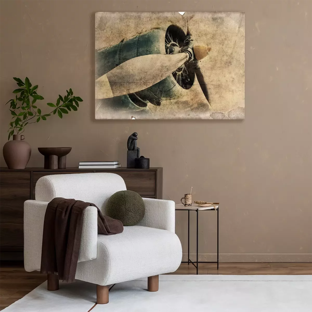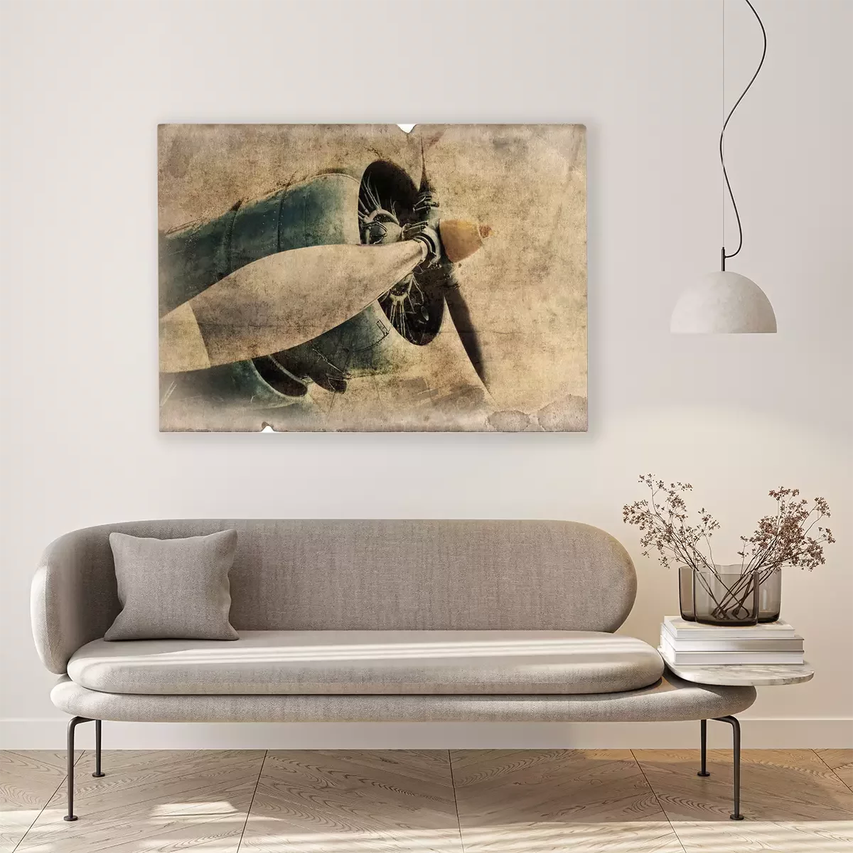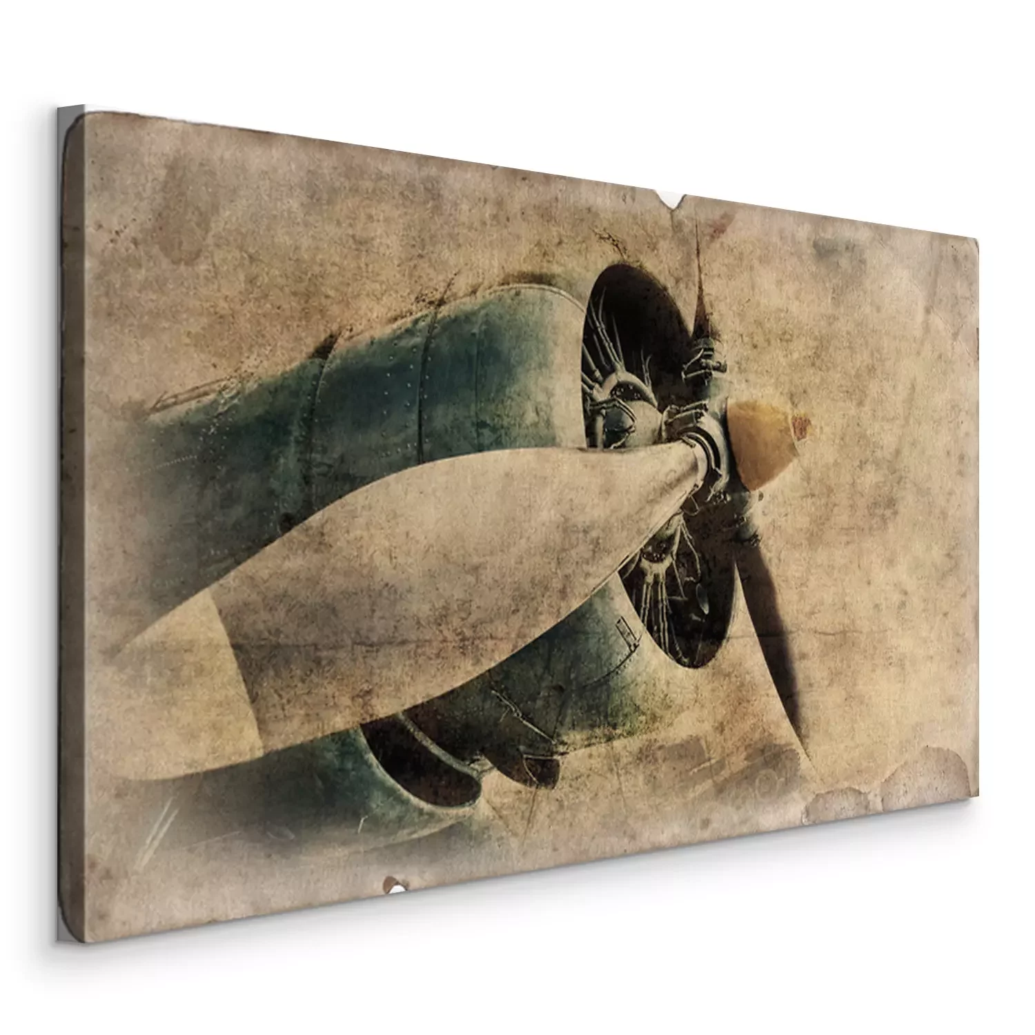 Canvas Geïsoleerde vintage militaire postkaart, vliegtuigmotoren