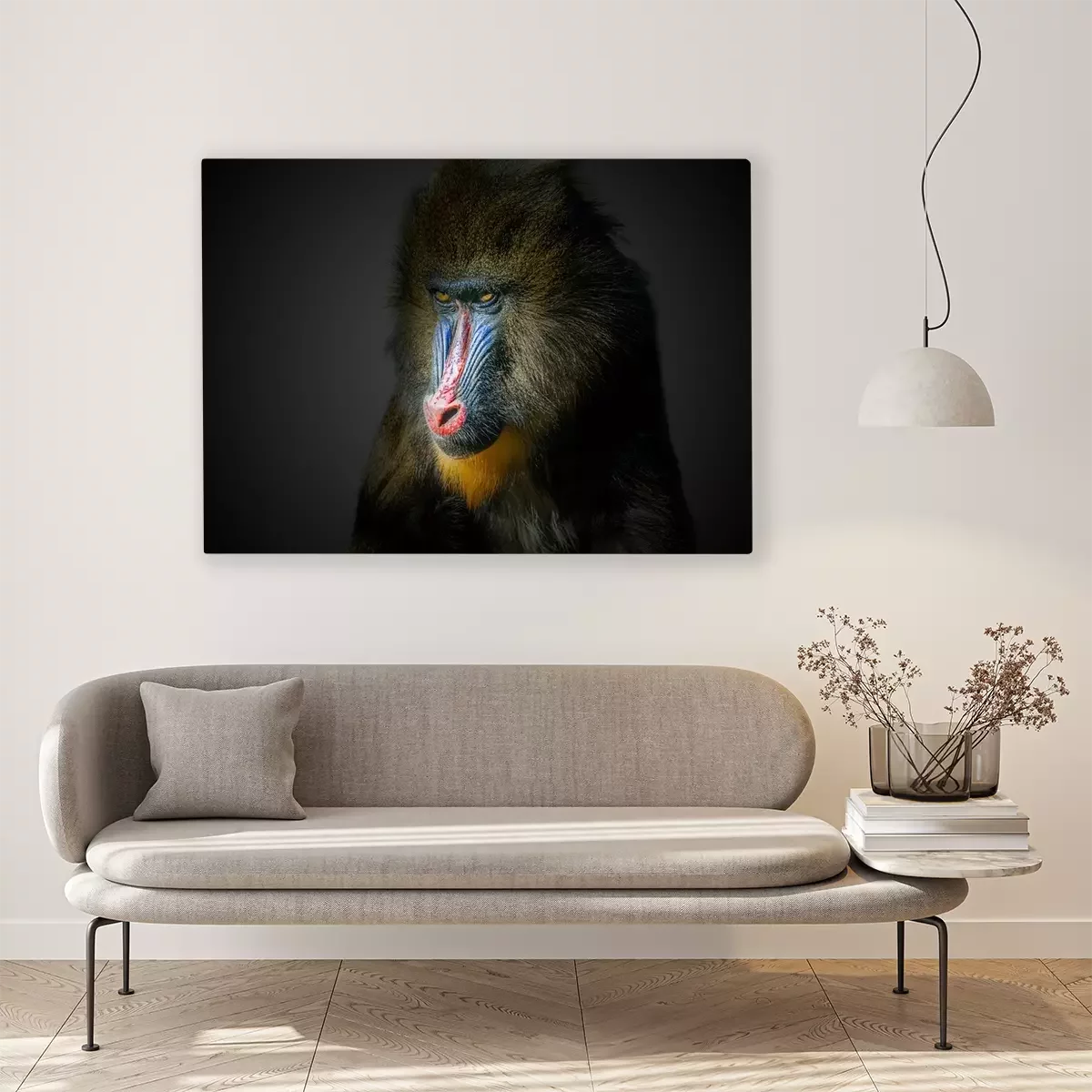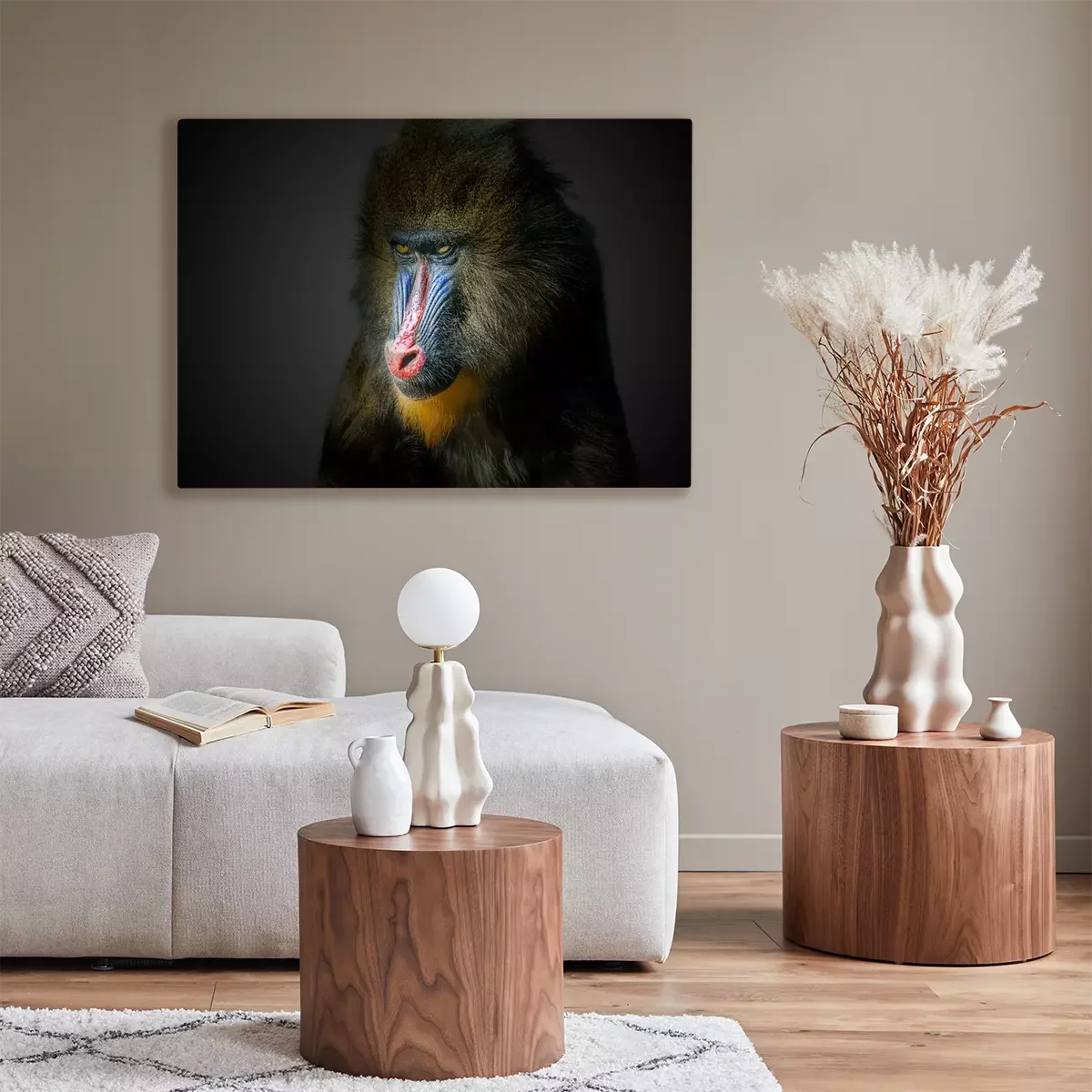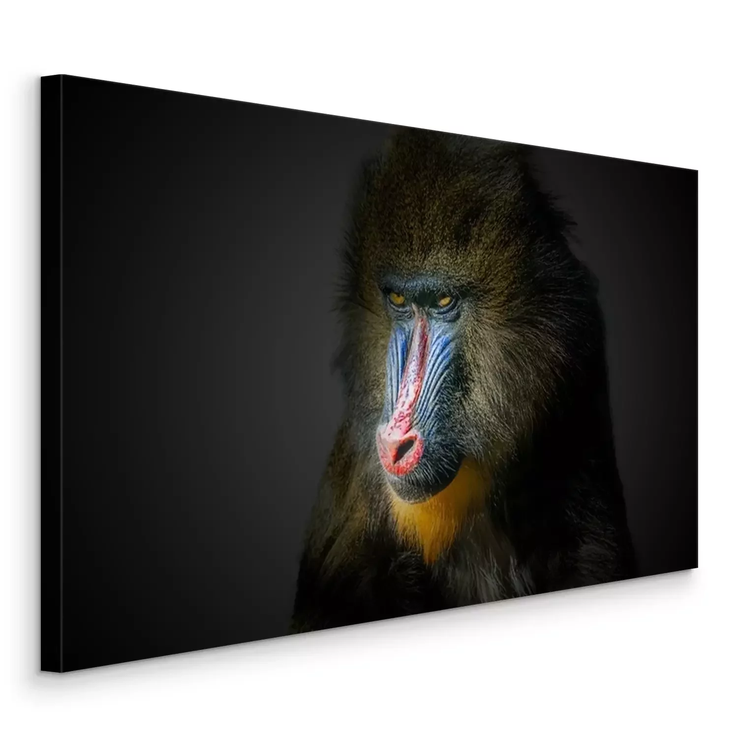 Canvas: Gekleurde mandril op zwarte achtergrond