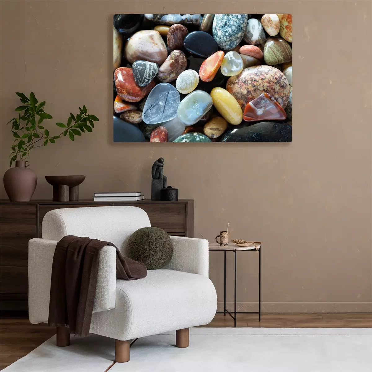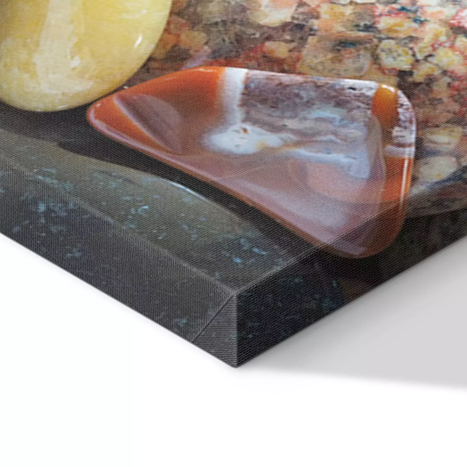 De print wordt aangebracht op hoogwaardig canvas dat op een schildersweefgetouw (spieraam) wordt gespannen. Omdat de print de zijranden bedekt, hoeft het ontwerp niet met een extra kader te worden omlijst. Wij raden ook composities aan die uit meerdere foto's bestaan en zo een coherente compositie vormen.