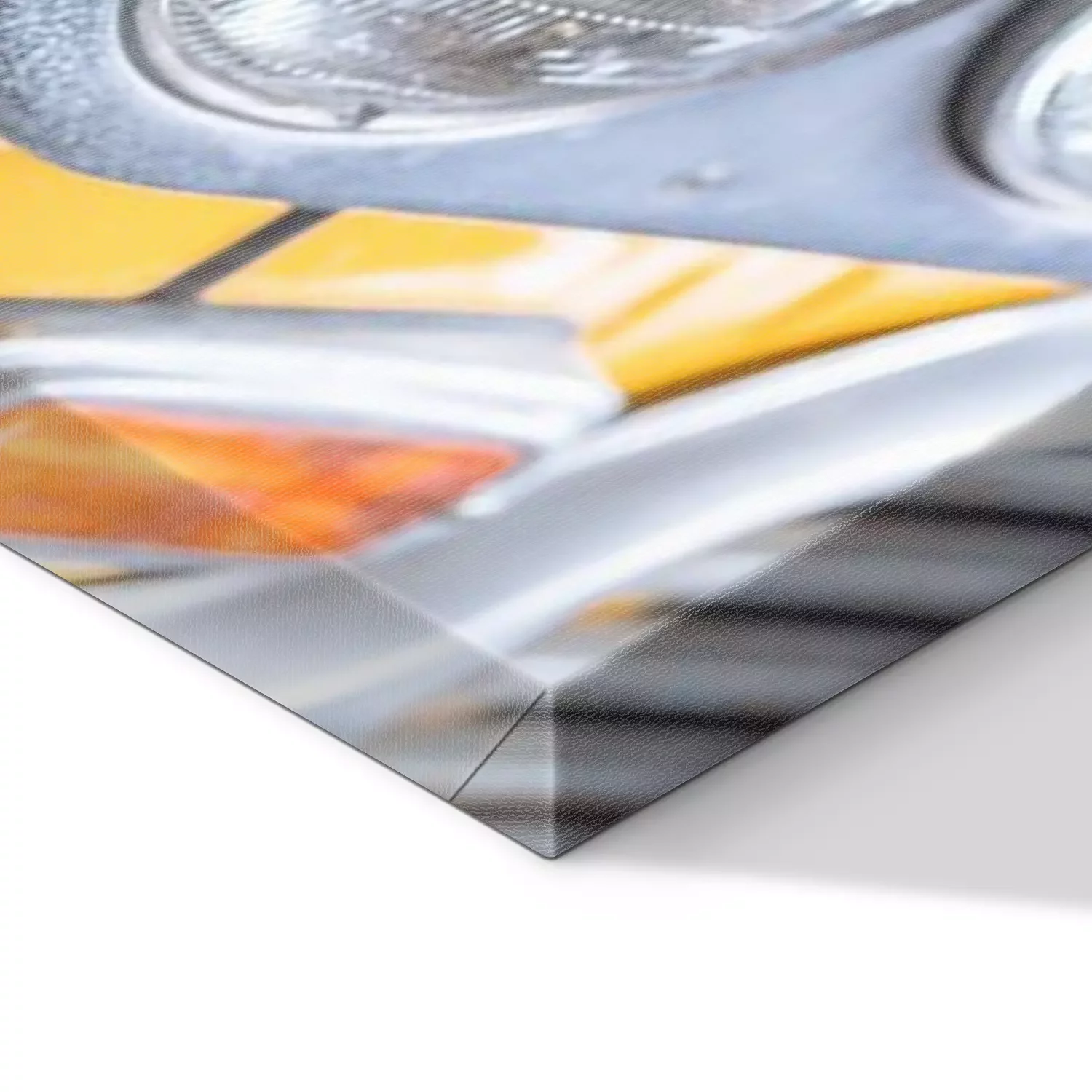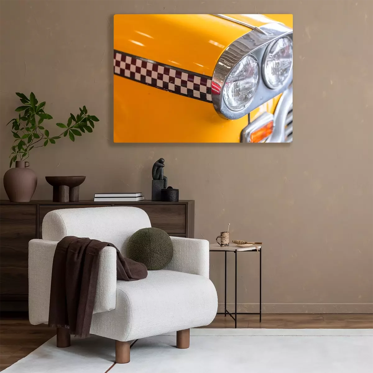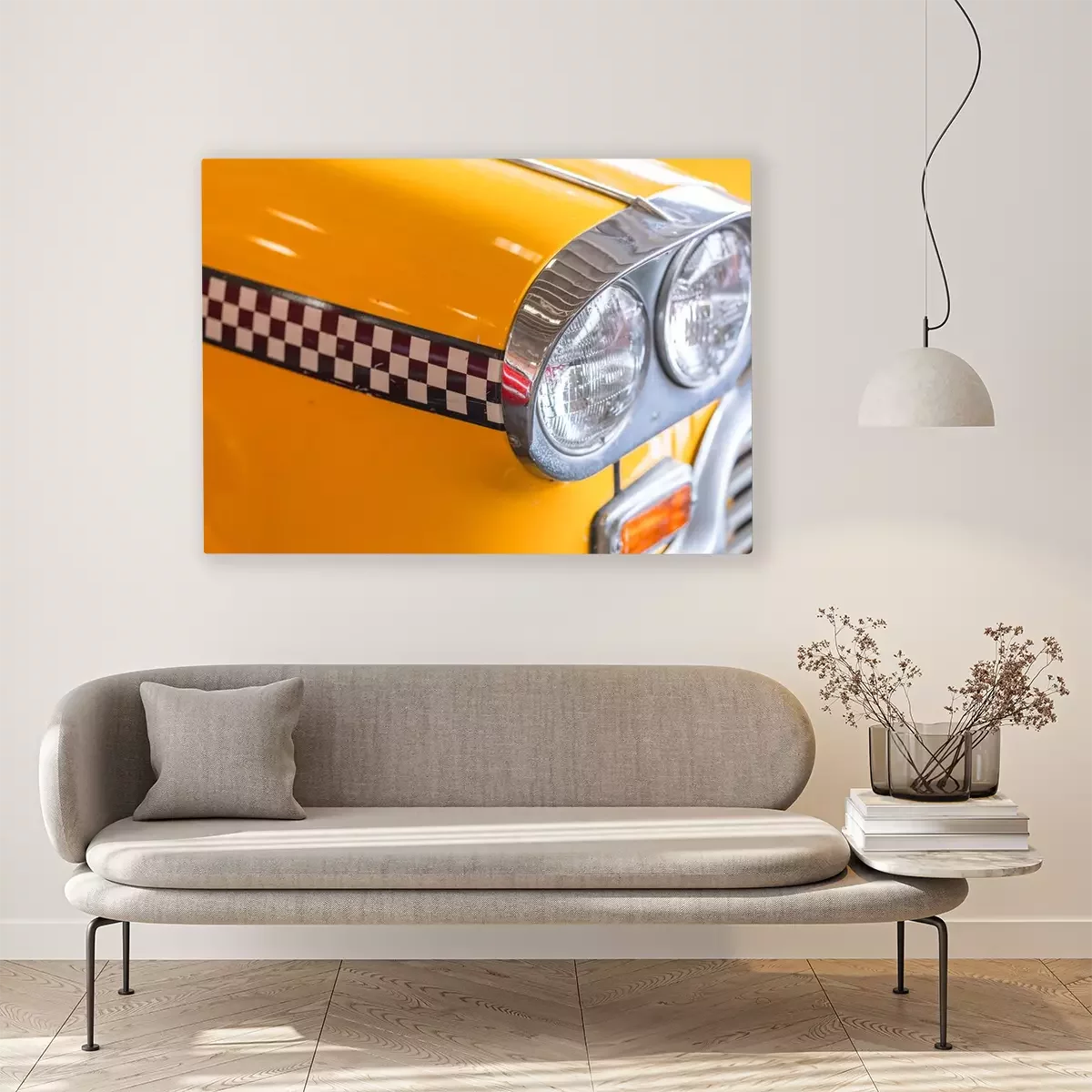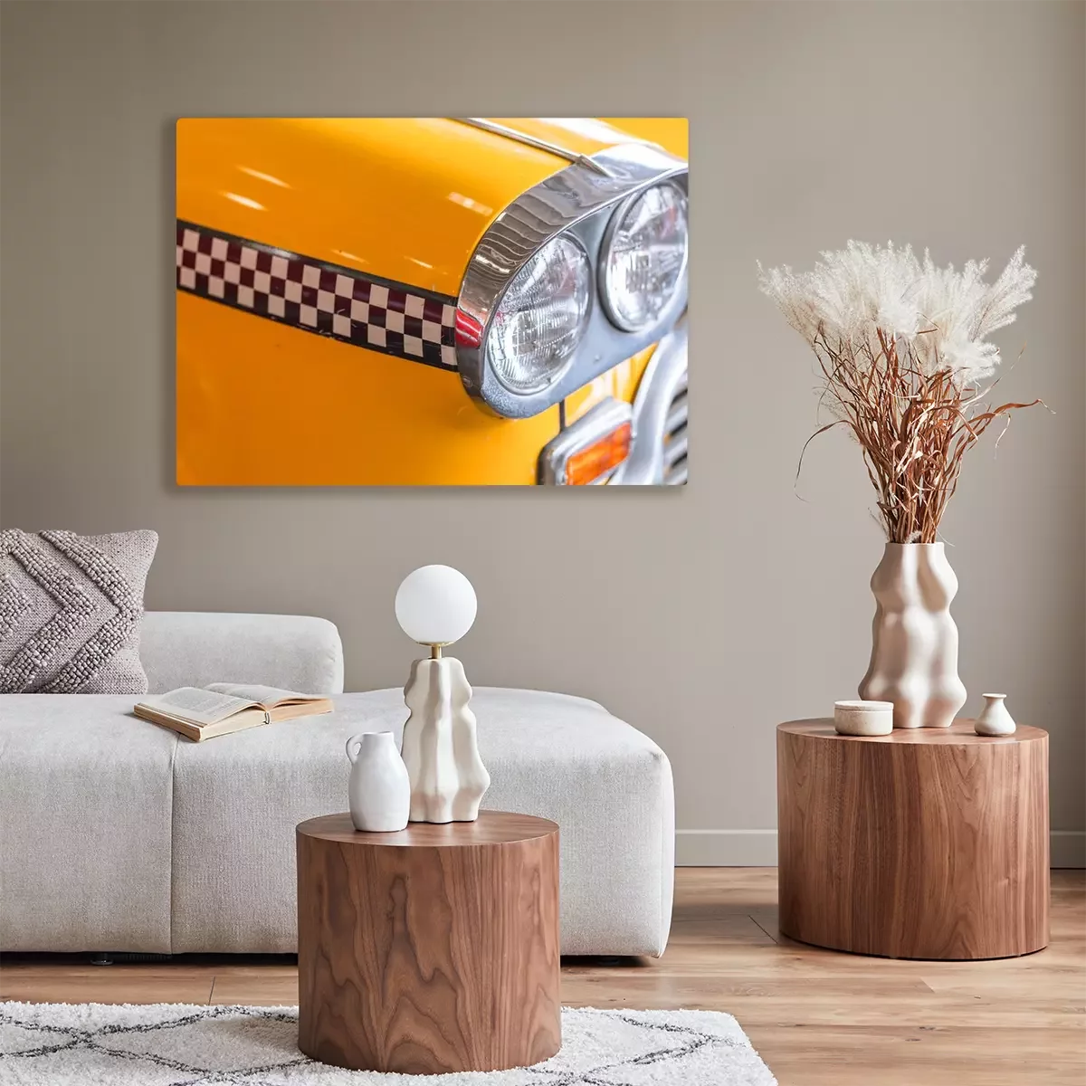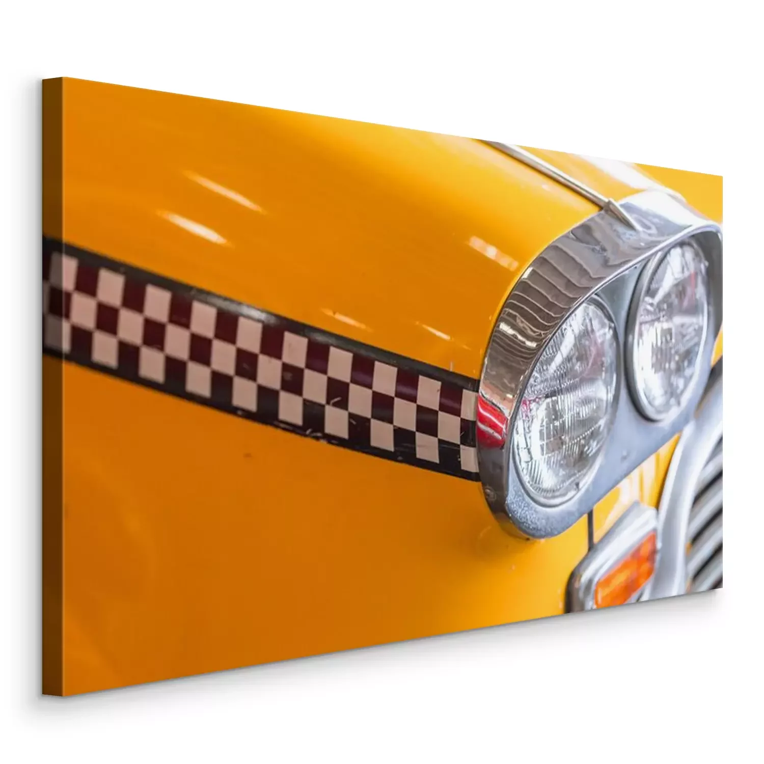 Canvas: gele taxi auto close-up koplicht voor taxichauffeur achtergrond concept