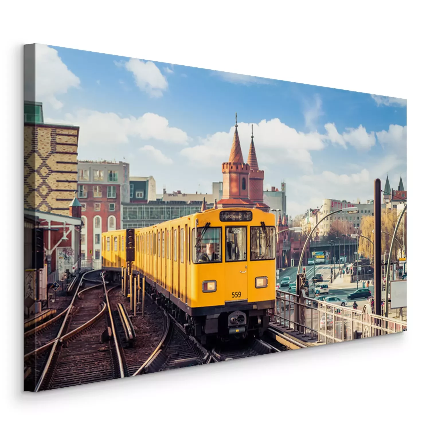 Canvas: Gele trein op een zonnige dag