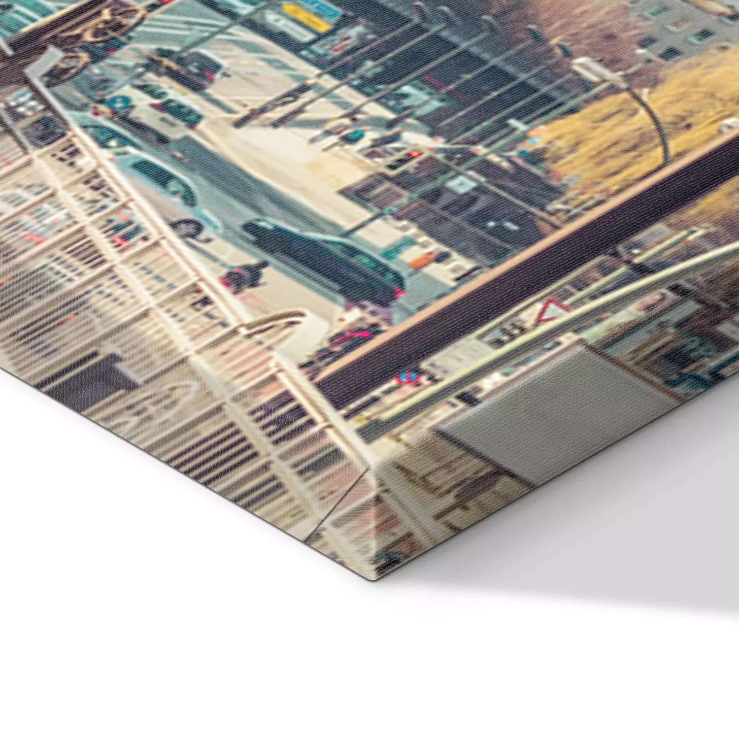 De print wordt aangebracht op hoogwaardig canvas dat op een schildersweefgetouw (spieraam) wordt gespannen. Omdat de print de zijranden bedekt, hoeft het ontwerp niet met een extra kader te worden omlijst. Wij raden ook composities aan die uit meerdere foto's bestaan en zo een coherente compositie vormen.
