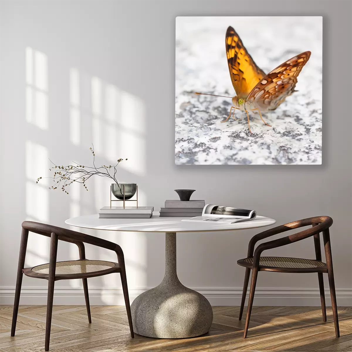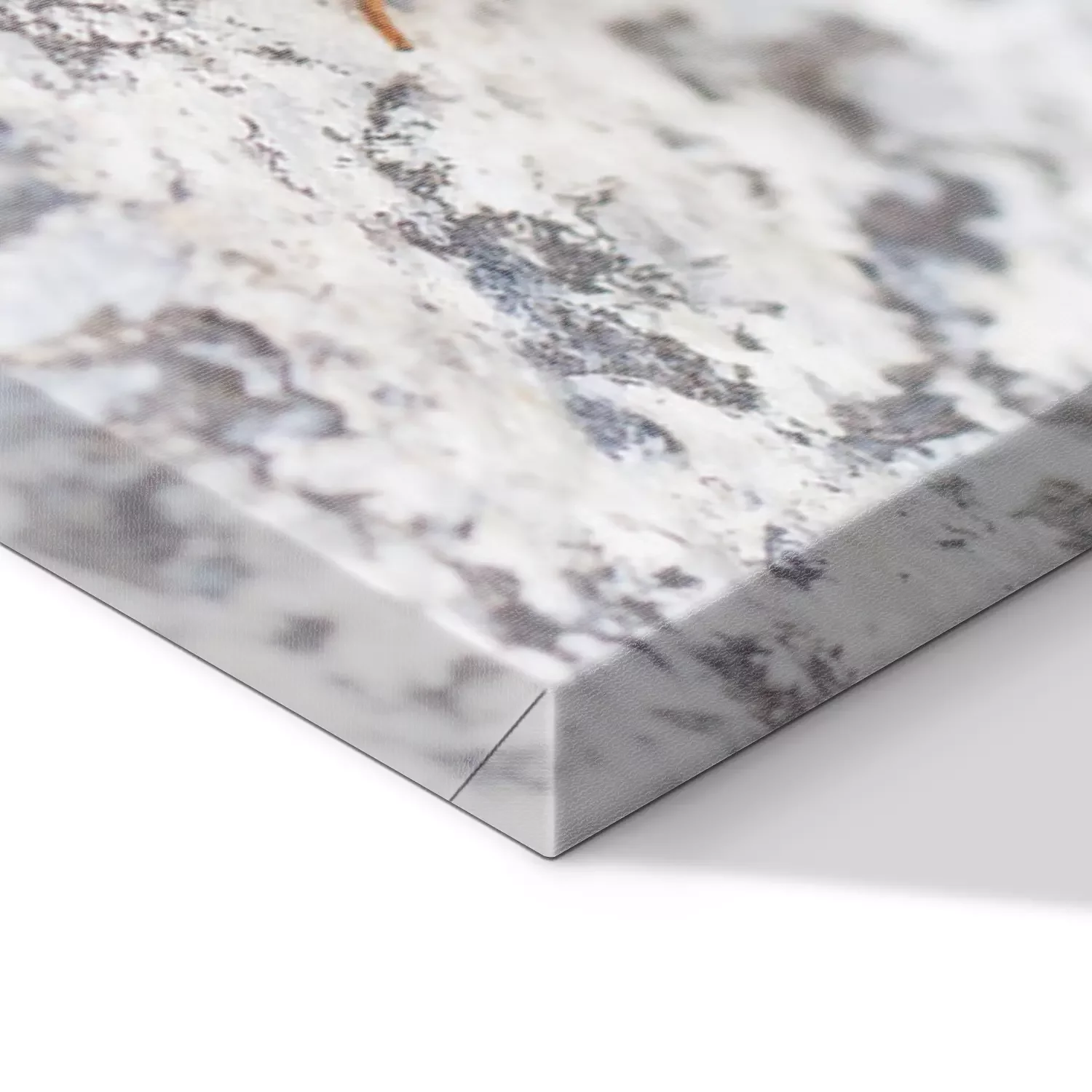 De print wordt aangebracht op hoogwaardig canvas dat op een schildersweefgetouw (spieraam) wordt gespannen. Omdat de print de zijranden bedekt, hoeft het ontwerp niet met een extra kader te worden omlijst. Wij raden ook composities aan die uit meerdere foto's bestaan en zo een coherente compositie vormen.