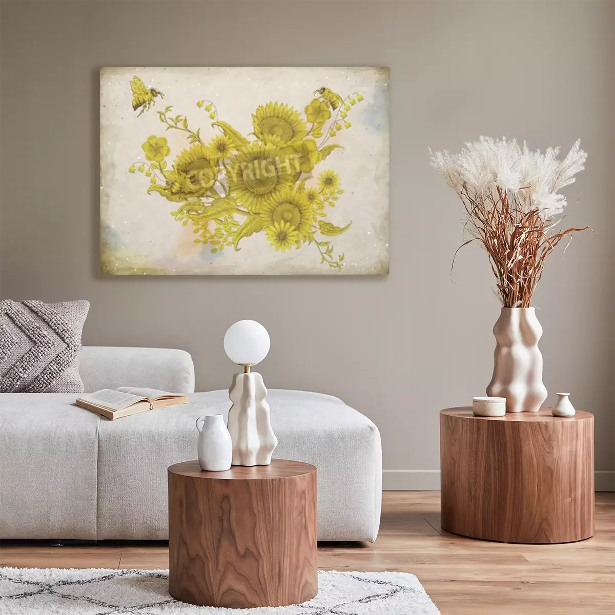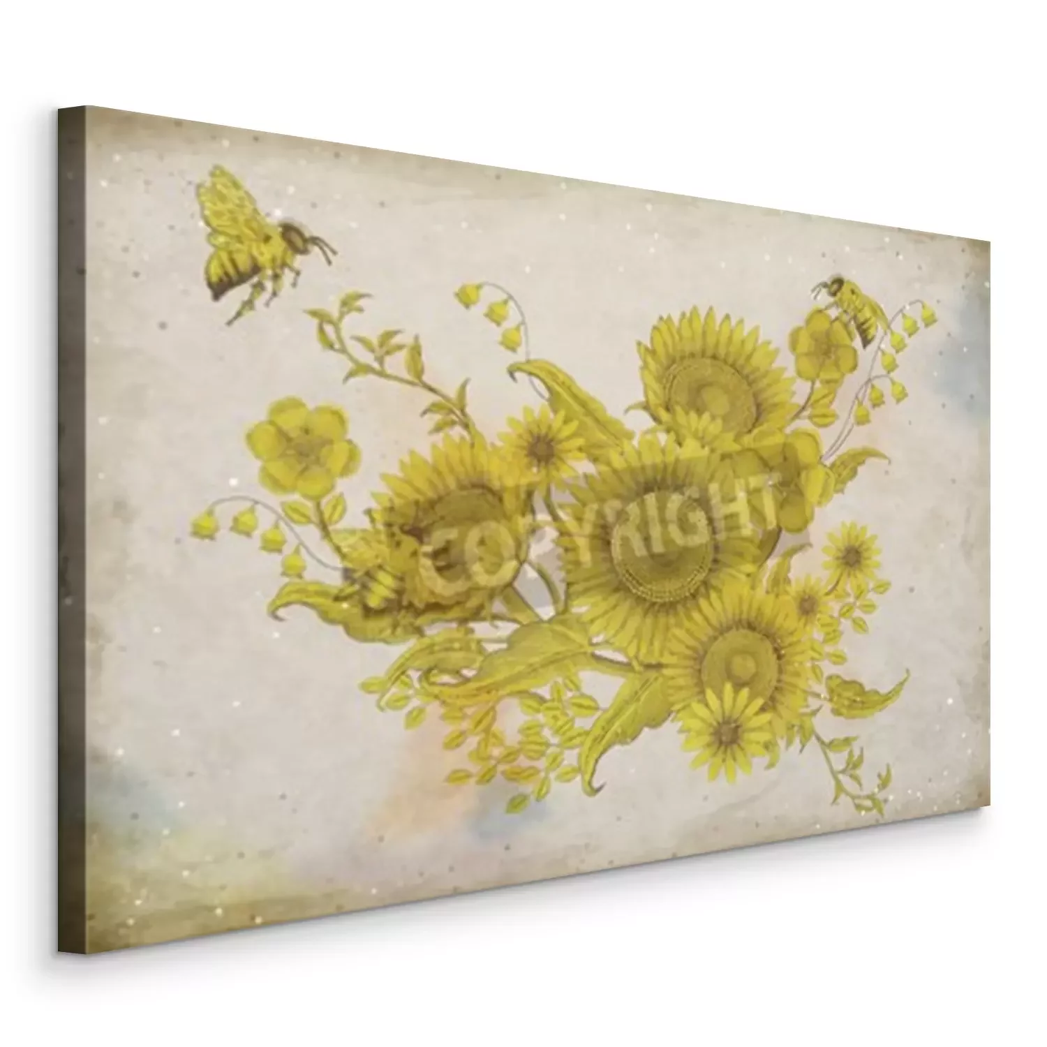 Canvas: Gele zonnebloemen op een retro achtergrond