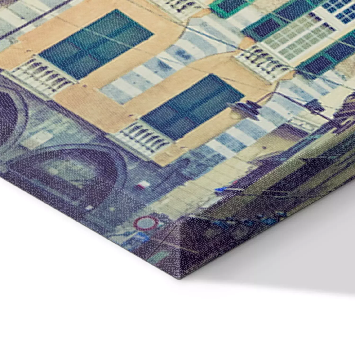 De print wordt aangebracht op hoogwaardig canvas dat op een schildersweefgetouw (spieraam) wordt gespannen. Omdat de print de zijranden bedekt, hoeft het ontwerp niet met een extra kader te worden omlijst. Wij raden ook composities aan die uit meerdere foto's bestaan en zo een coherente compositie vormen.