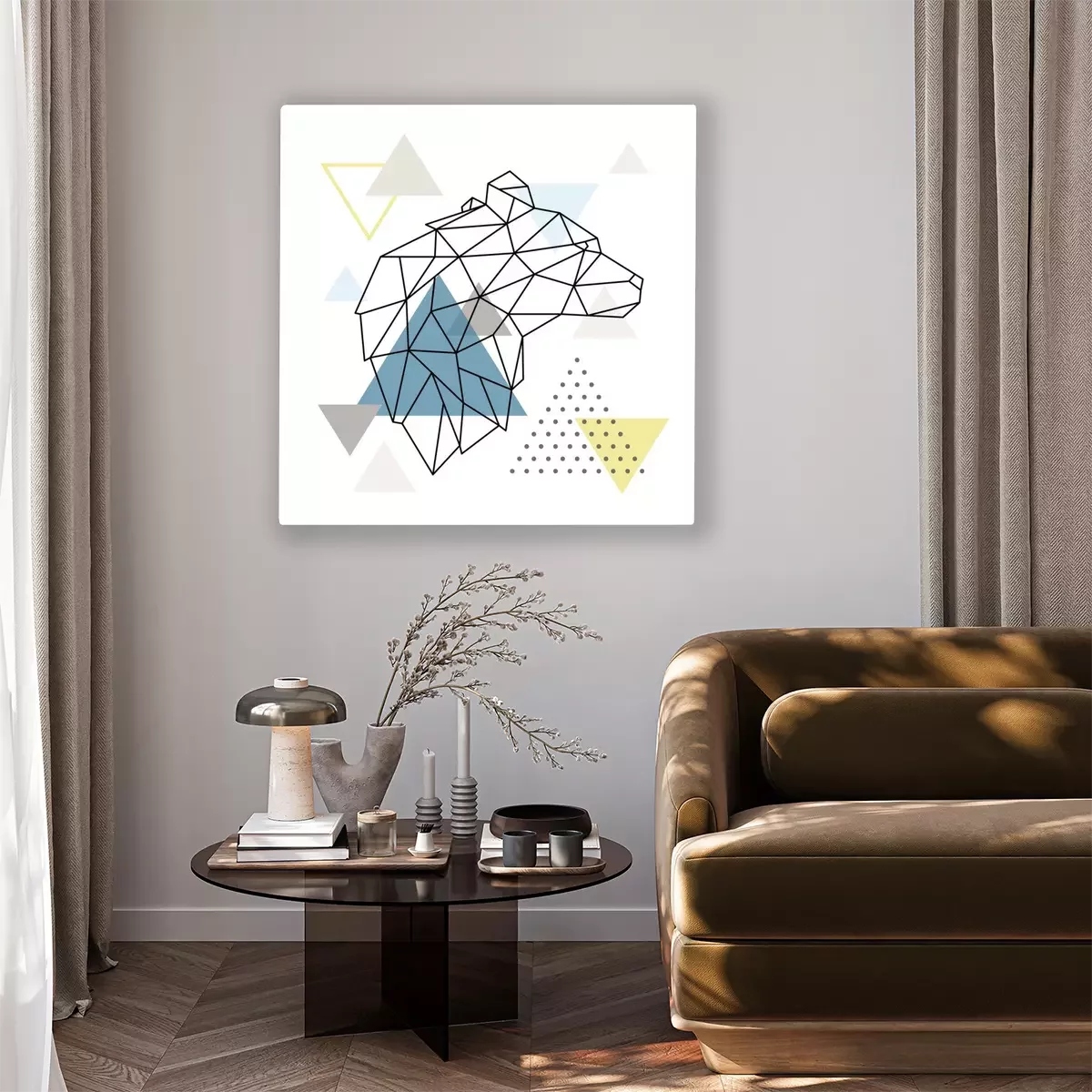 Canvas: Geometrische Bear silhouet op driehoek achtergrond. Veelhoekige Wolf embleem. Vector illustratie