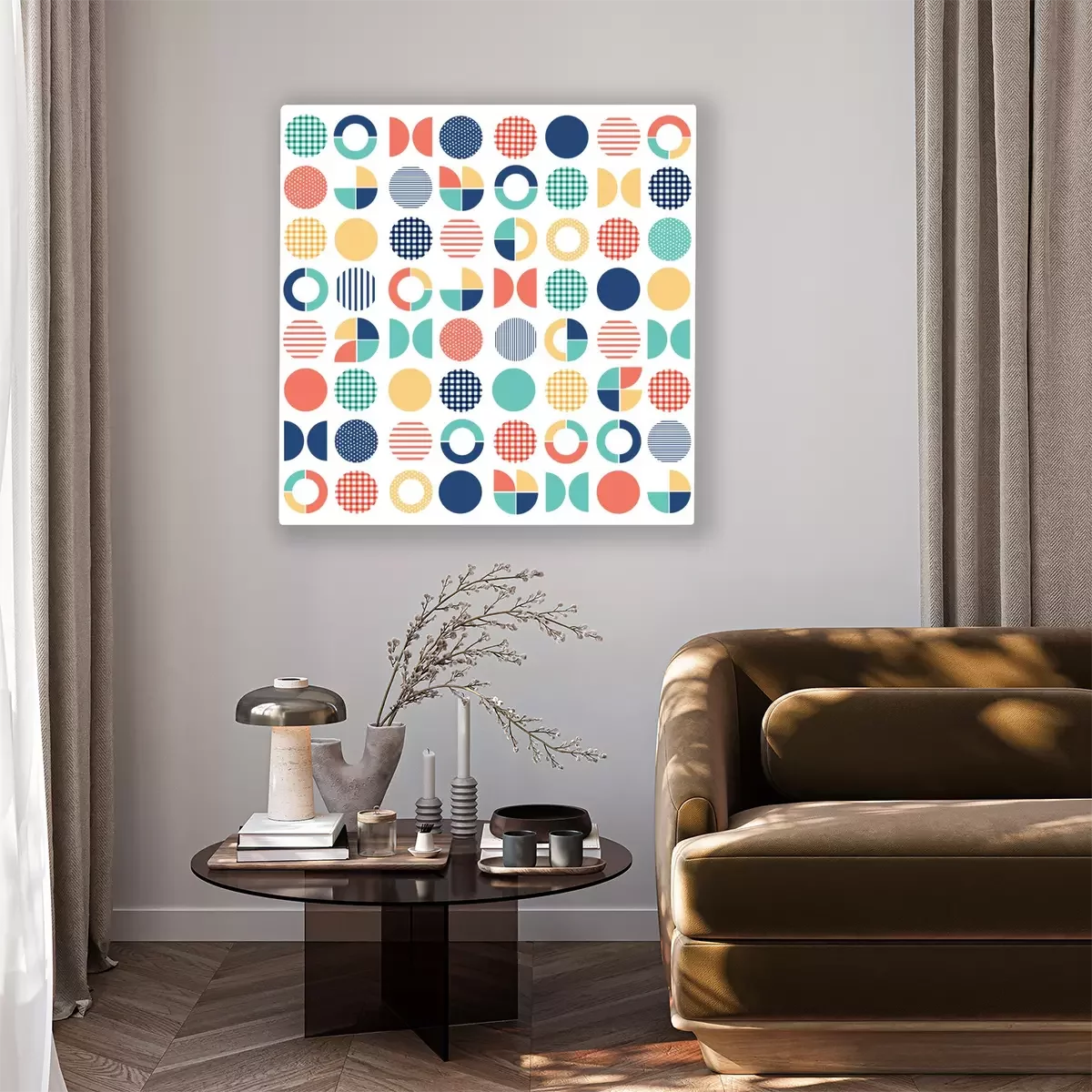 Canvas: Geometrische kleurrijke gemengde cirkel naadloze patroon achtergrond
