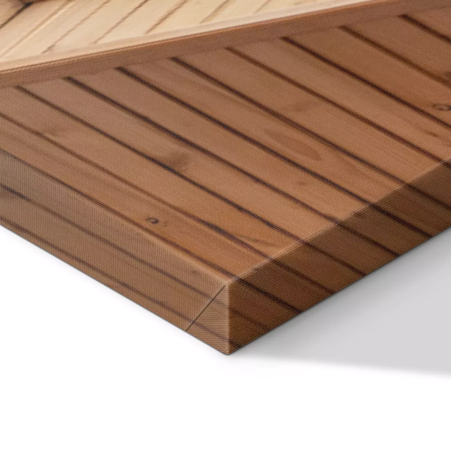 De print wordt aangebracht op hoogwaardig canvas dat op een schildersweefgetouw (spieraam) wordt gespannen. Omdat de print de zijranden bedekt, hoeft het ontwerp niet met een extra kader te worden omlijst. Wij raden ook composities aan die uit meerdere foto's bestaan en zo een coherente compositie vormen.