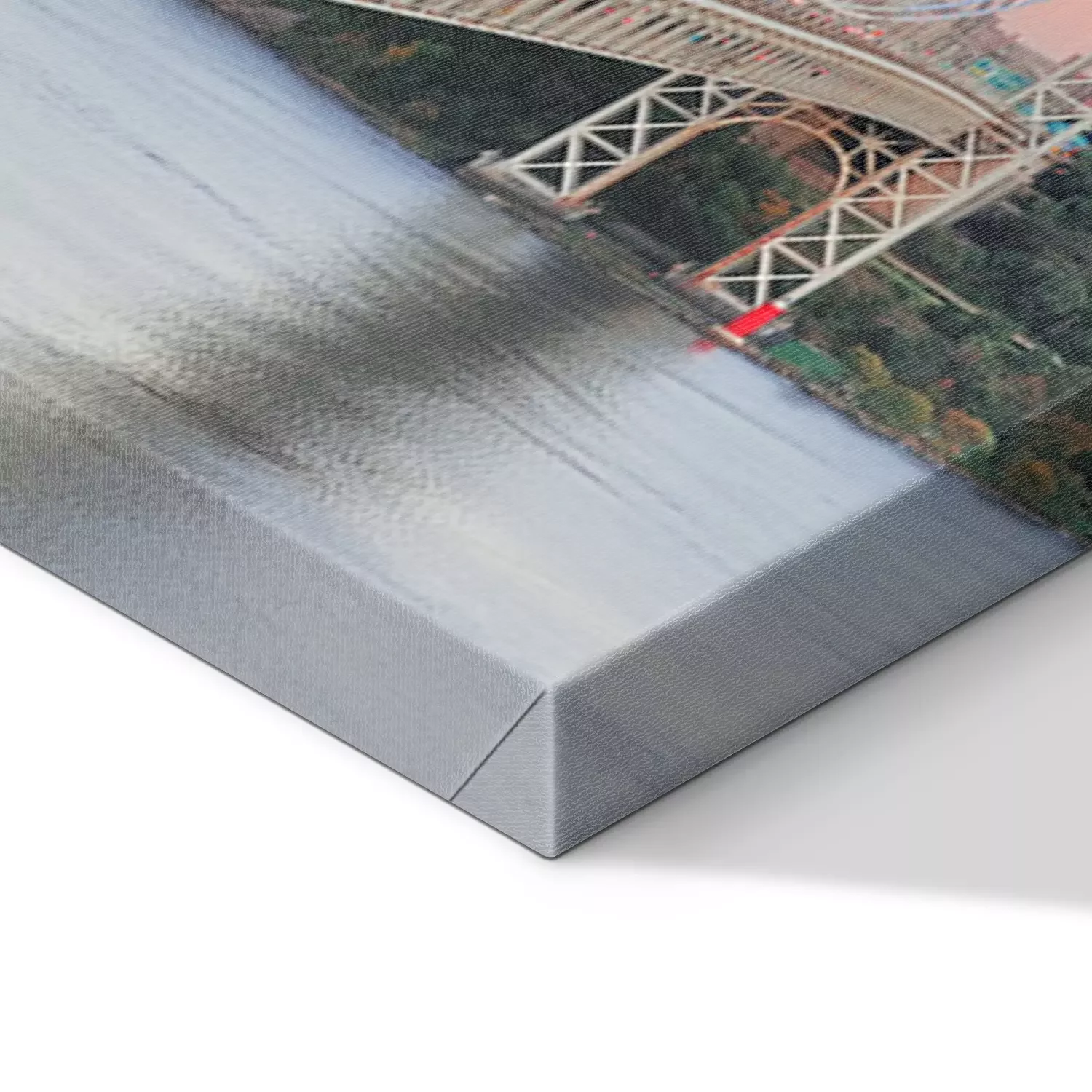 De print wordt aangebracht op hoogwaardig canvas dat op een schildersweefgetouw (spieraam) wordt gespannen. Omdat de print de zijranden bedekt, hoeft het ontwerp niet met een extra kader te worden omlijst. Wij raden ook composities aan die uit meerdere foto's bestaan en zo een coherente compositie vormen.