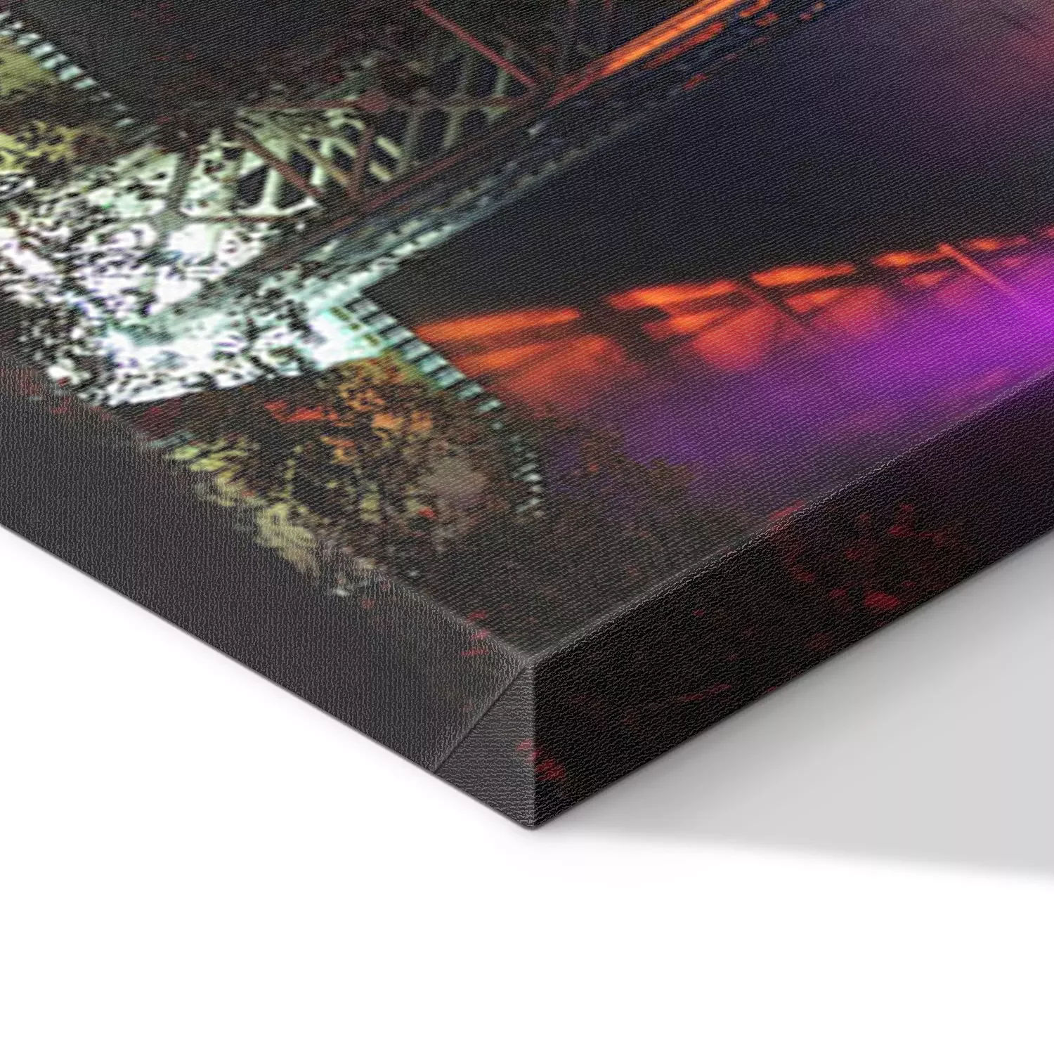 De print wordt aangebracht op hoogwaardig canvas dat op een schildersweefgetouw (spieraam) wordt gespannen. Omdat de print de zijranden bedekt, hoeft het ontwerp niet met een extra kader te worden omlijst. Wij raden ook composities aan die uit meerdere foto's bestaan en zo een coherente compositie vormen.