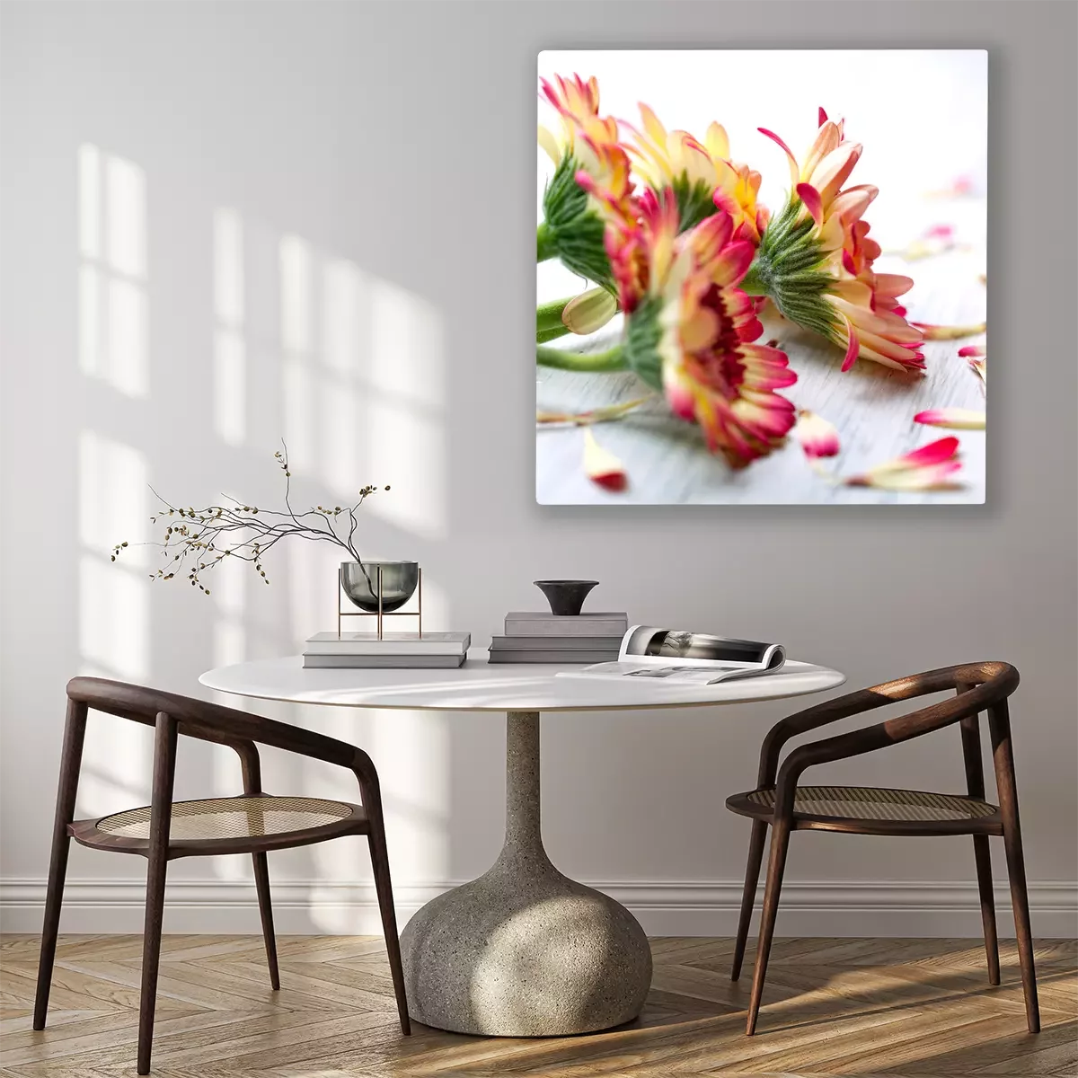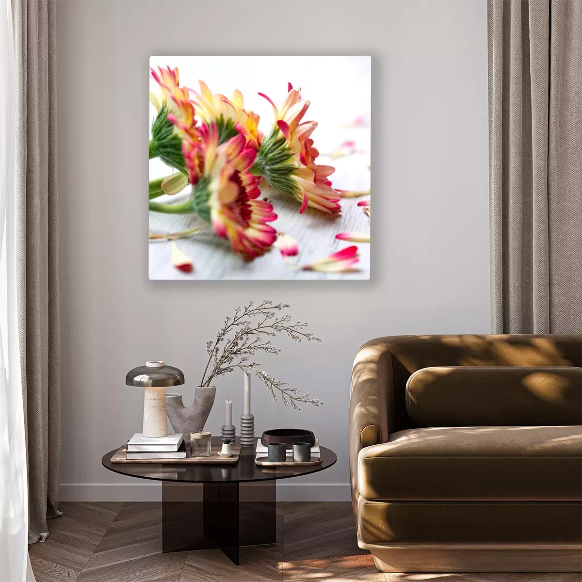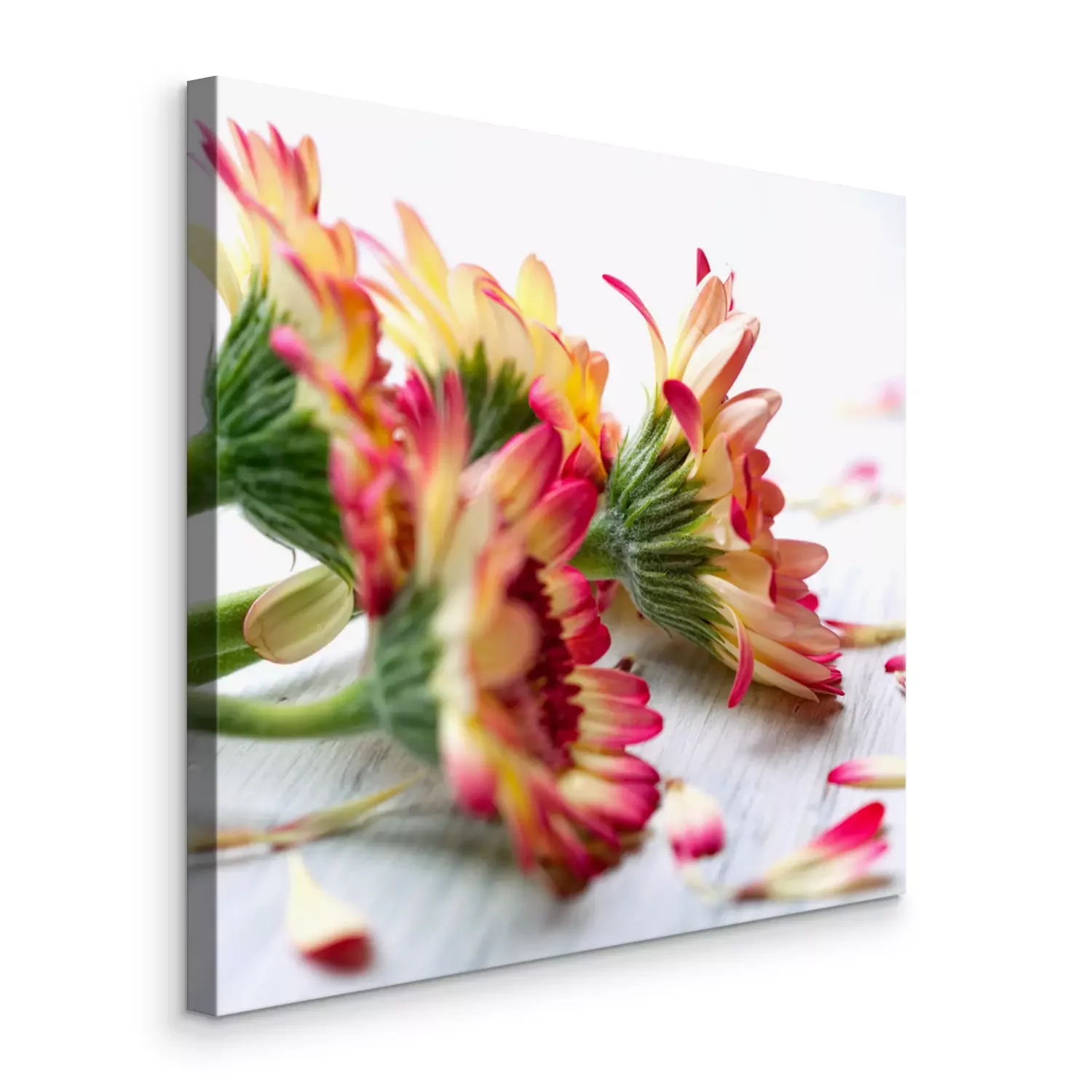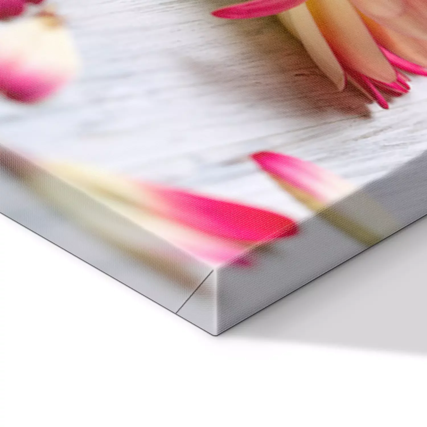 De print wordt aangebracht op hoogwaardig canvas dat op een schildersweefgetouw (spieraam) wordt gespannen. Omdat de print de zijranden bedekt, hoeft het ontwerp niet met een extra kader te worden omlijst. Wij raden ook composities aan die uit meerdere foto's bestaan en zo een coherente compositie vormen.
