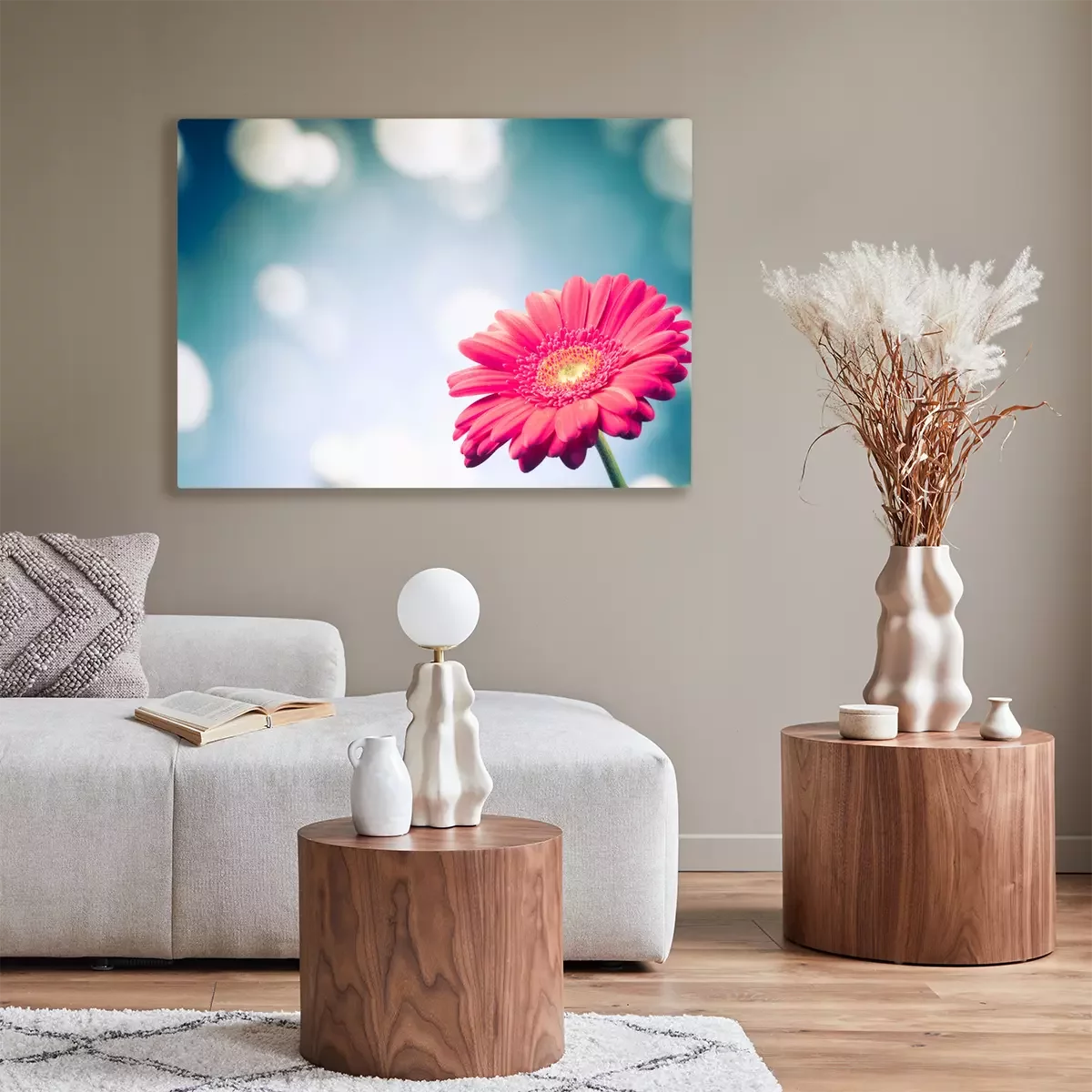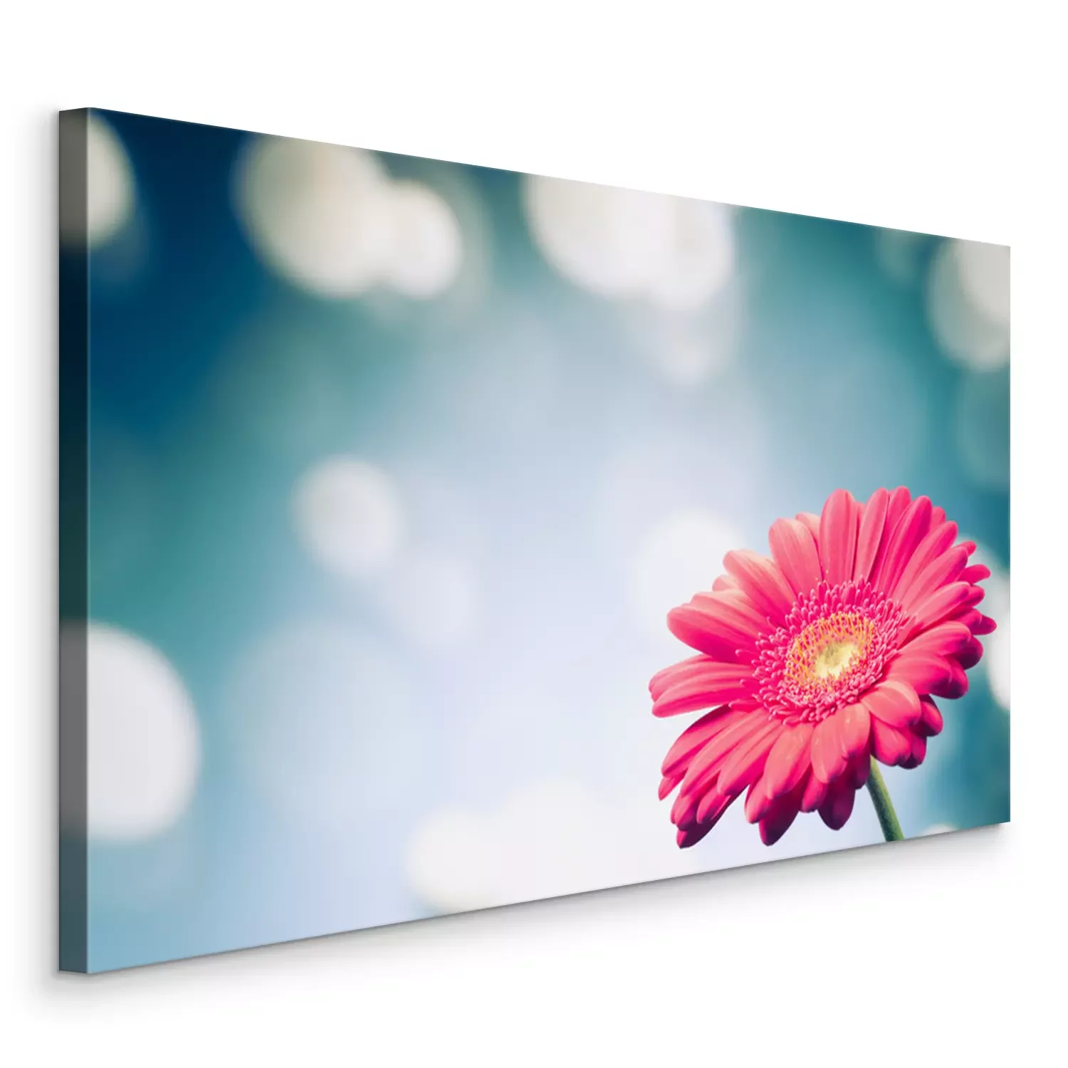 Canvas: gerbera bloem op glanzende bokeh achtergrond