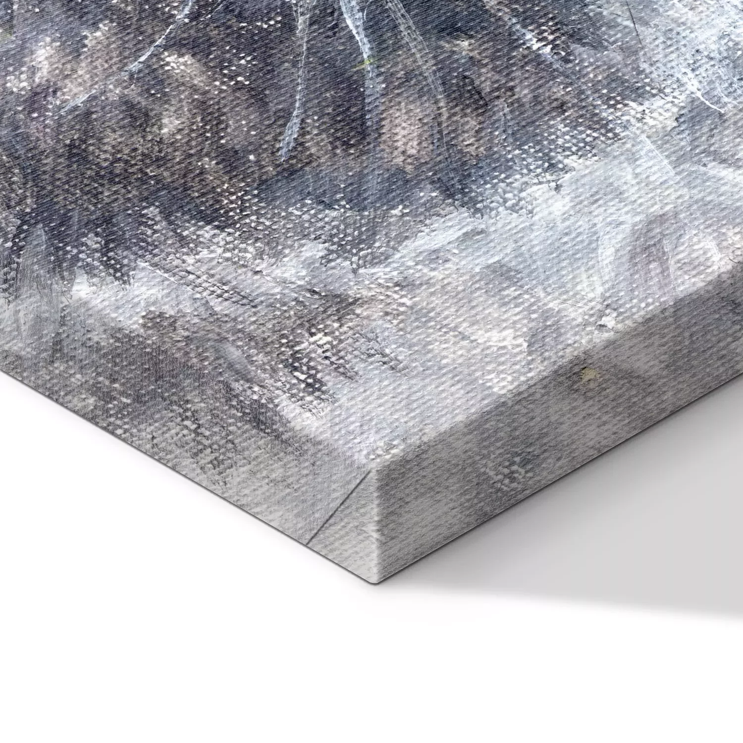 De print wordt aangebracht op hoogwaardig canvas dat op een schildersweefgetouw (spieraam) wordt gespannen. Omdat de print de zijranden bedekt, hoeft het ontwerp niet met een extra kader te worden omlijst. Wij raden ook composities aan die uit meerdere foto's bestaan en zo een coherente compositie vormen.
