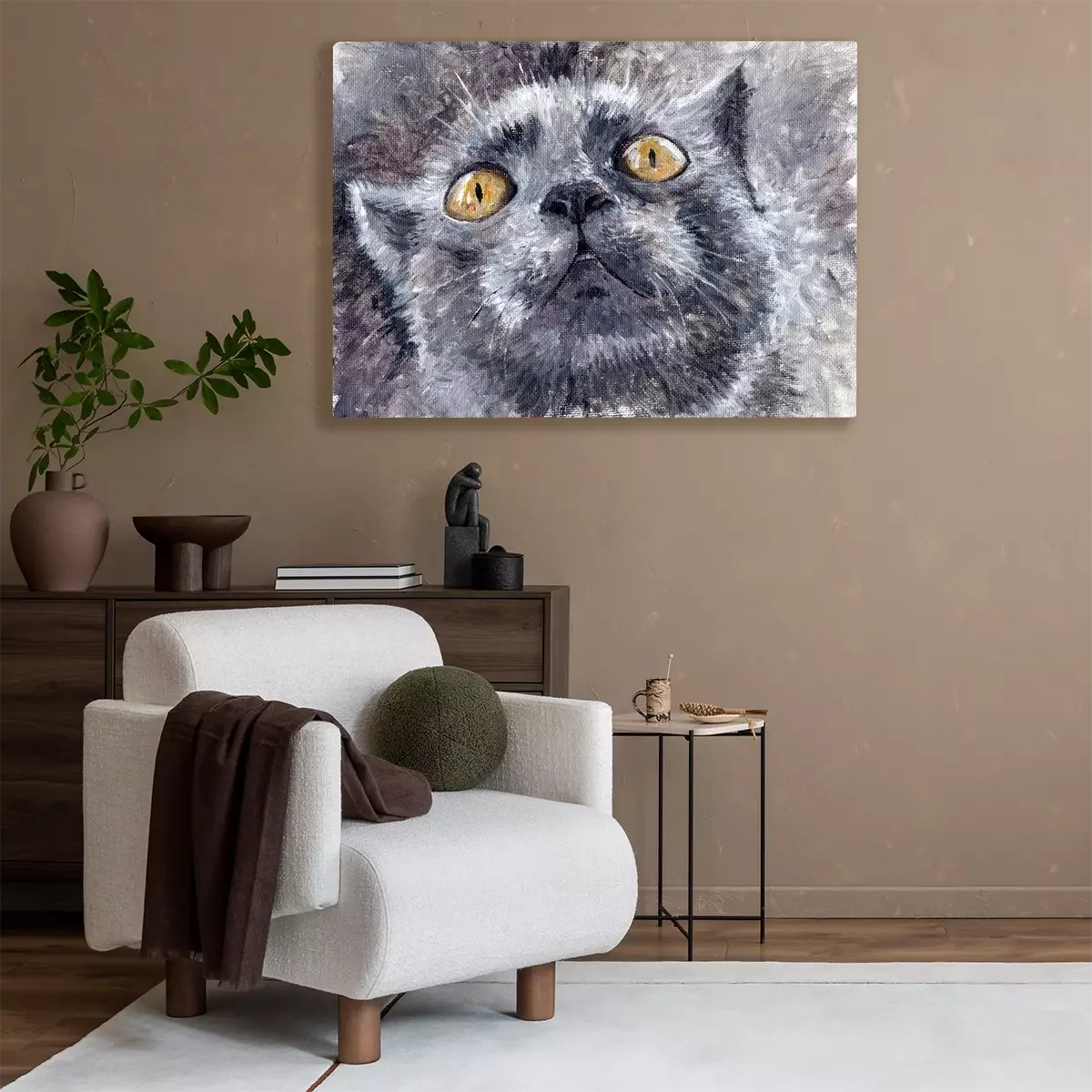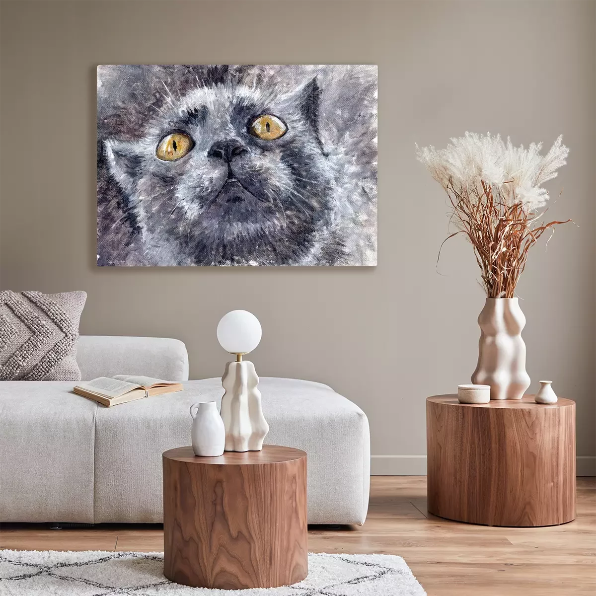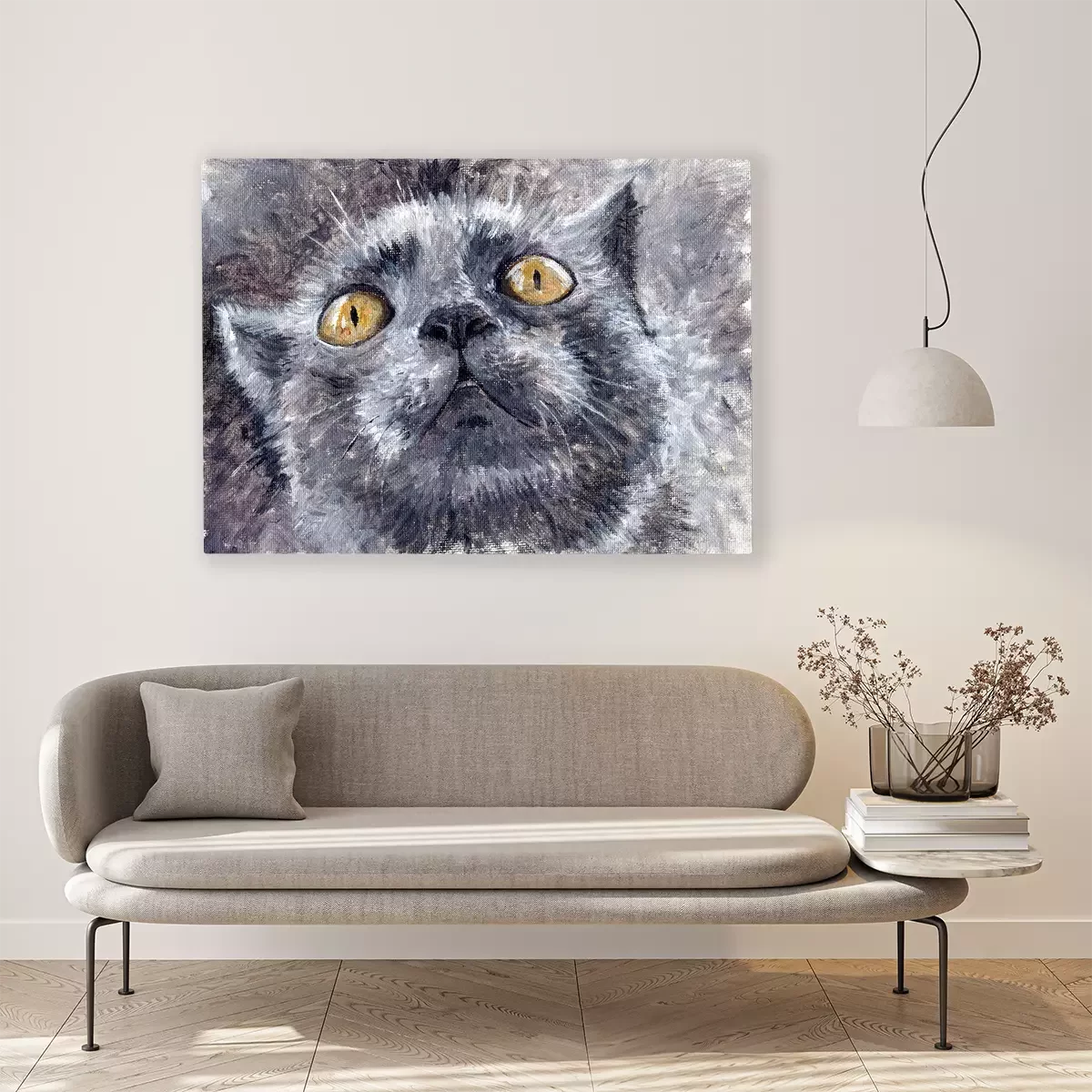 Canvas: Geschilderde grijze kat