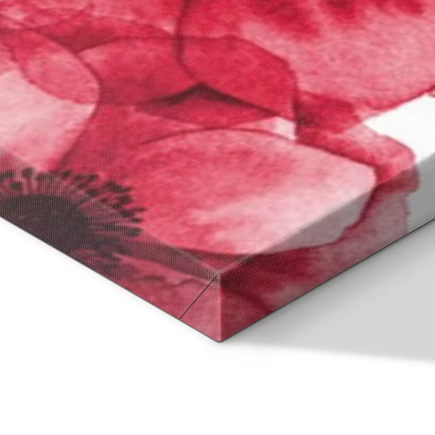 De print wordt aangebracht op hoogwaardig canvas dat op een schildersweefgetouw (spieraam) wordt gespannen. Omdat de print de zijranden bedekt, hoeft het ontwerp niet met een extra kader te worden omlijst. Wij raden ook composities aan die uit meerdere foto's bestaan en zo een coherente compositie vormen.
