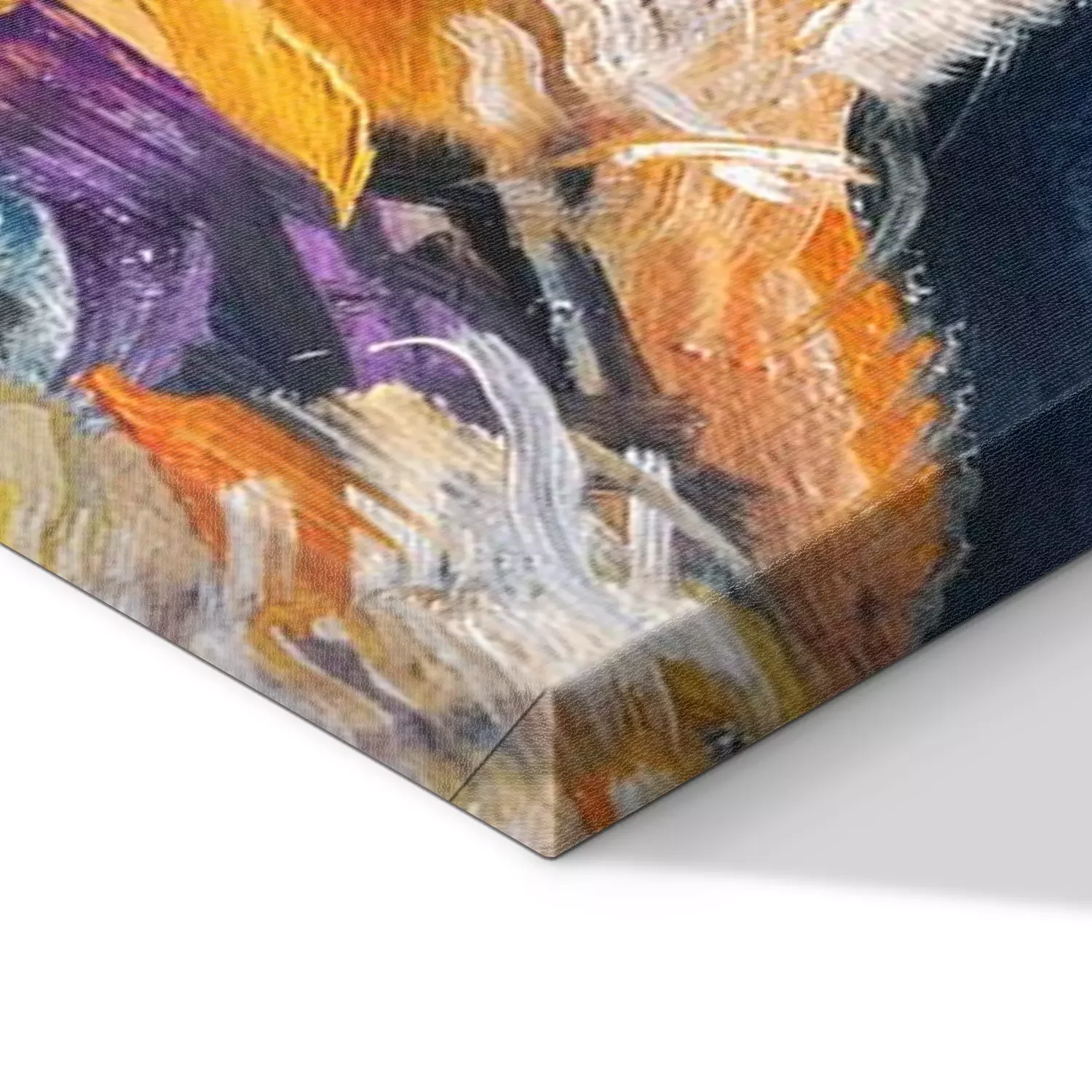 De print wordt aangebracht op hoogwaardig canvas dat op een schildersweefgetouw (spieraam) wordt gespannen. Omdat de print de zijranden bedekt, hoeft het ontwerp niet met een extra kader te worden omlijst. Wij raden ook composities aan die uit meerdere foto's bestaan en zo een coherente compositie vormen.