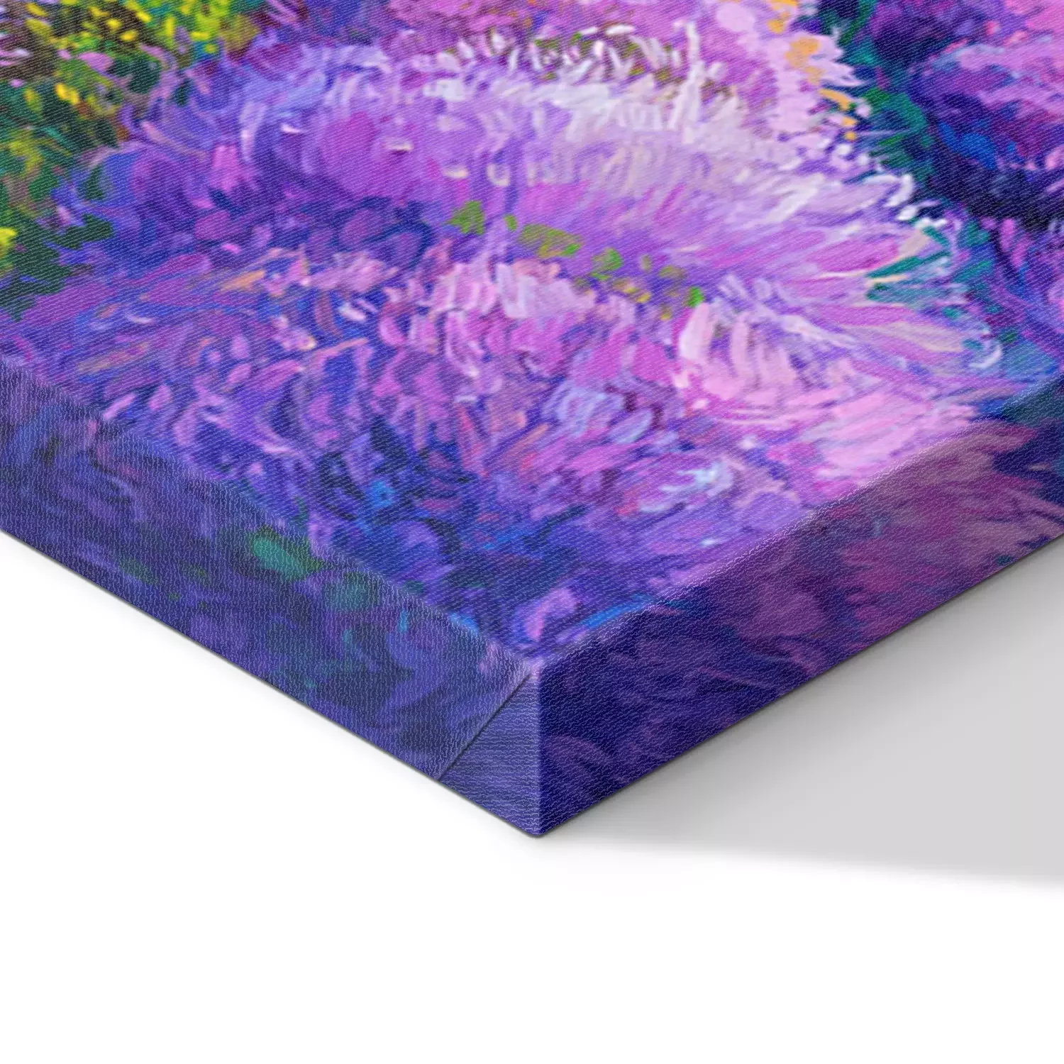 De print wordt aangebracht op hoogwaardig canvas dat op een schildersweefgetouw (spieraam) wordt gespannen. Omdat de print de zijranden bedekt, hoeft het ontwerp niet met een extra kader te worden omlijst. Wij raden ook composities aan die uit meerdere foto's bestaan en zo een coherente compositie vormen.