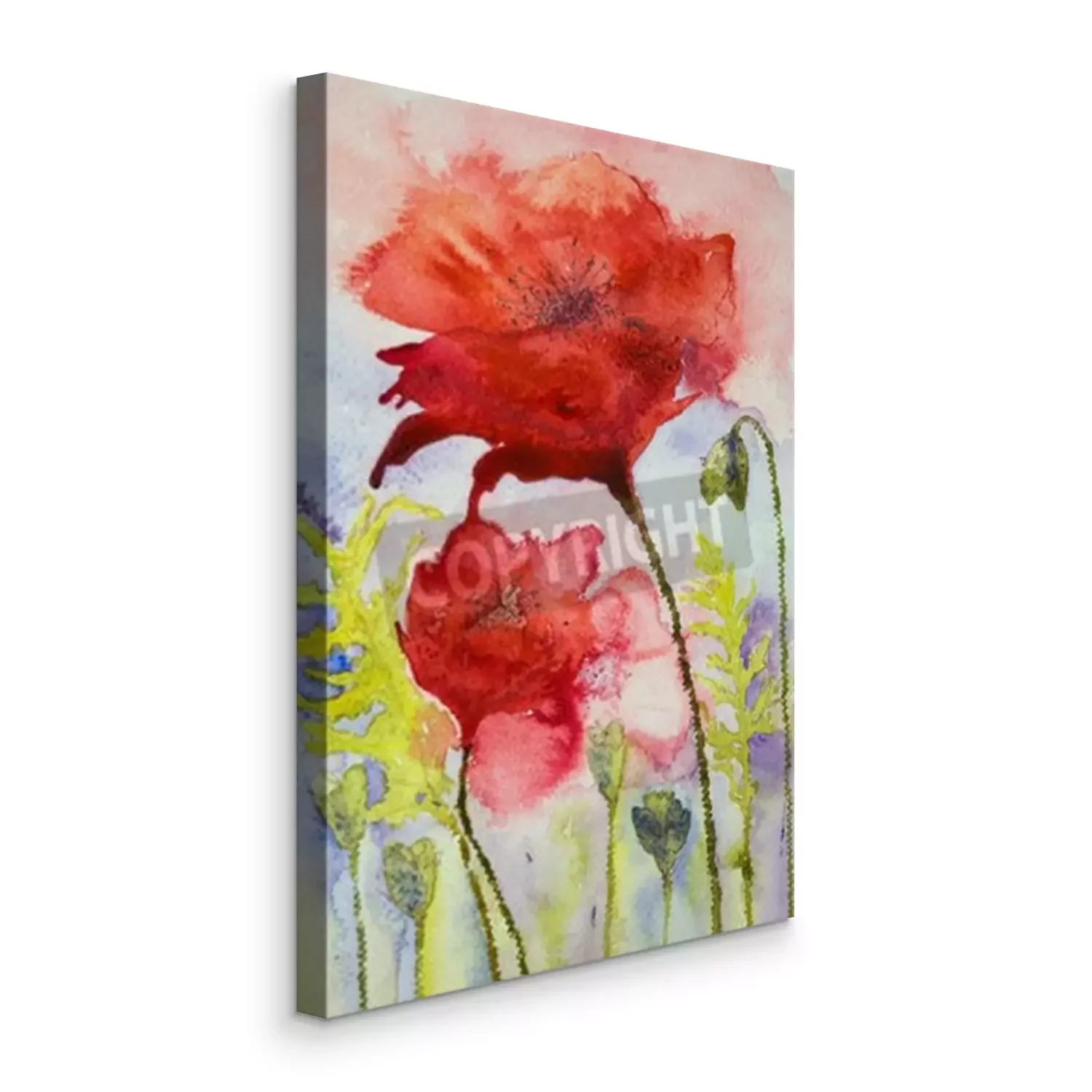 Canvas Geschilderde rode klaprozen