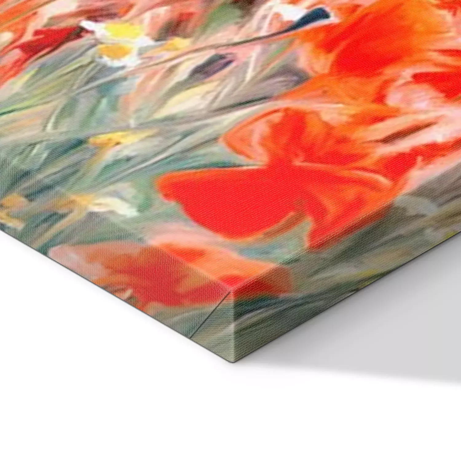 De print wordt aangebracht op hoogwaardig canvas dat op een schildersweefgetouw (spieraam) wordt gespannen. Omdat de print de zijranden bedekt, hoeft het ontwerp niet met een extra kader te worden omlijst. Wij raden ook composities aan die uit meerdere foto's bestaan en zo een coherente compositie vormen.