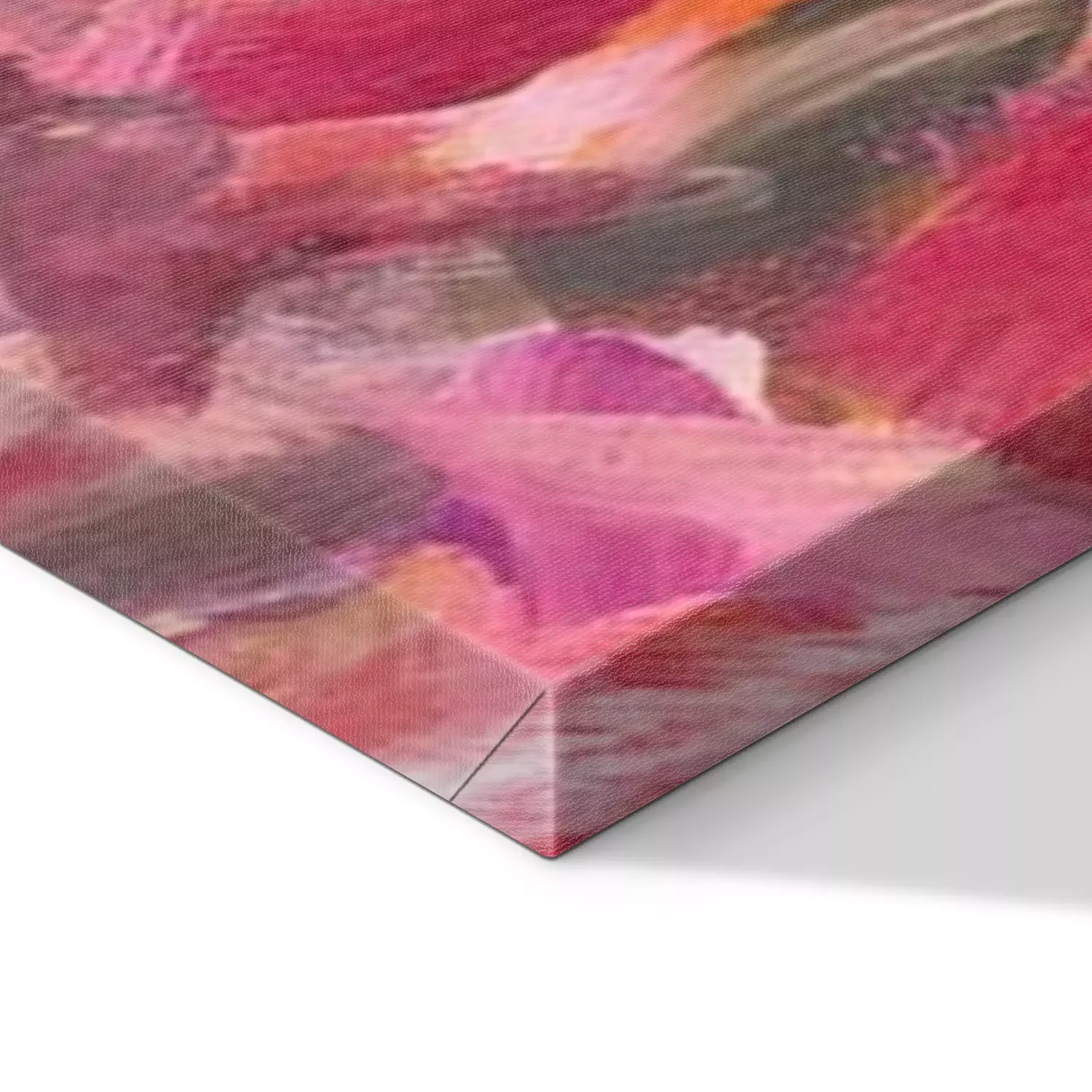 De print wordt aangebracht op hoogwaardig canvas dat op een schildersweefgetouw (spieraam) wordt gespannen. Omdat de print de zijranden bedekt, hoeft het ontwerp niet met een extra kader te worden omlijst. Wij raden ook composities aan die uit meerdere foto's bestaan en zo een coherente compositie vormen.